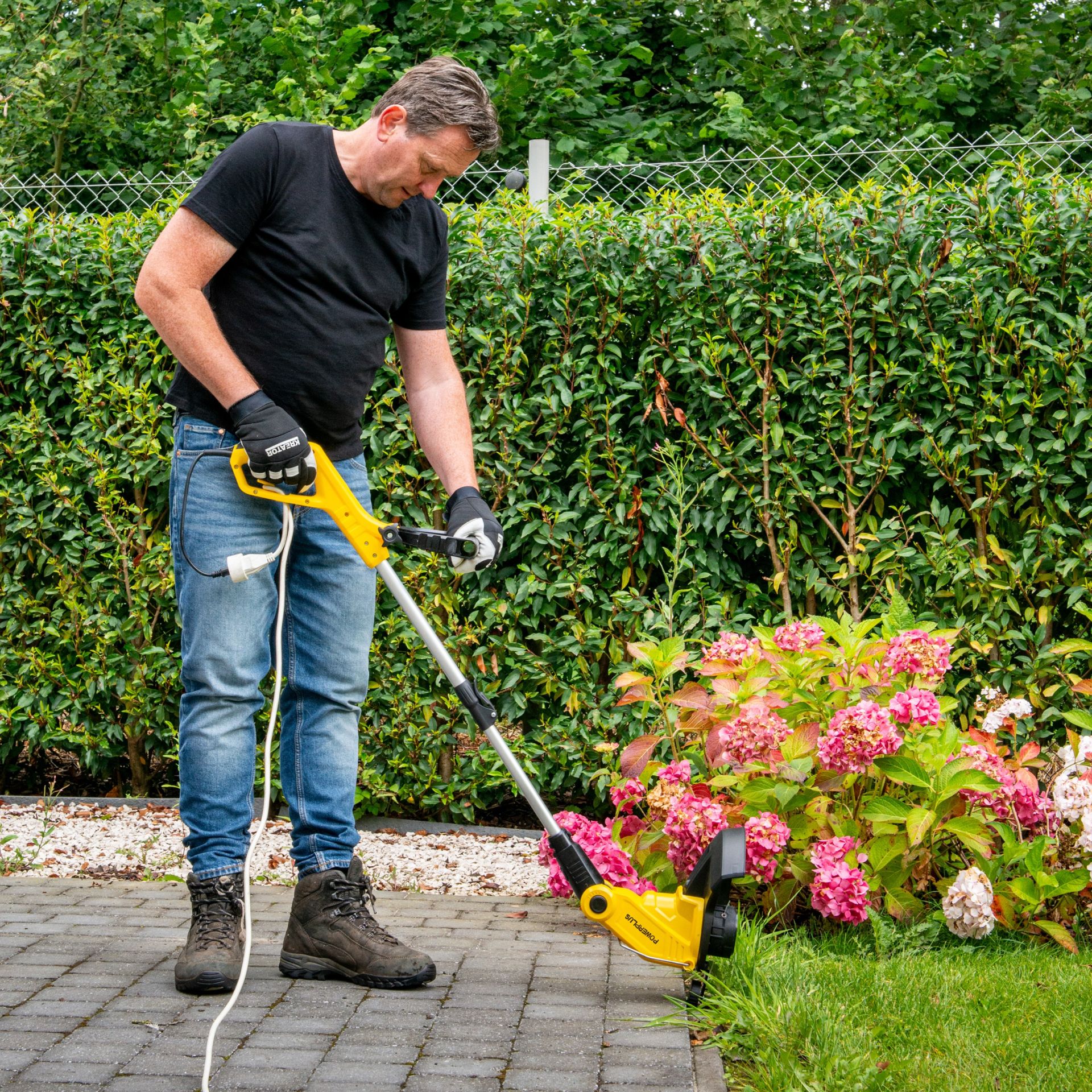 Met een snijbreedte van 300 mm is deze kantenmaaier ideaal voor middelgrote tuinen. Je onderhoudt er niet alleen je grasranden mee, je werkt ook makkelijk rond obstakels, zoals bomen of hekken.