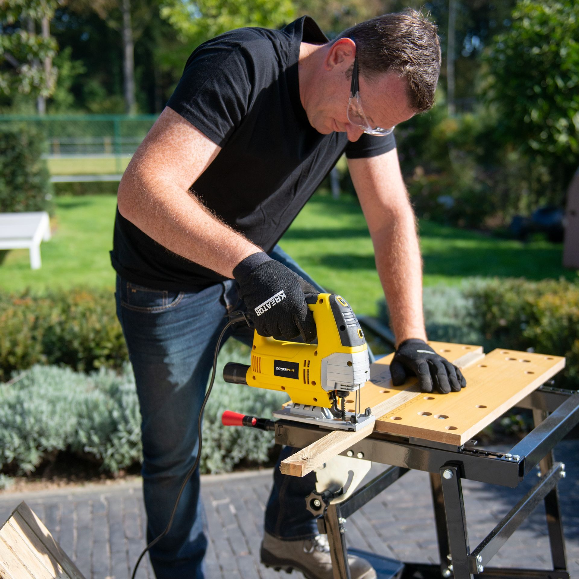 De POWX0361 wordt geleverd met 0 universele zaagbladen met T-aansluiting. Daarmee kan je al meteen aan de slag.