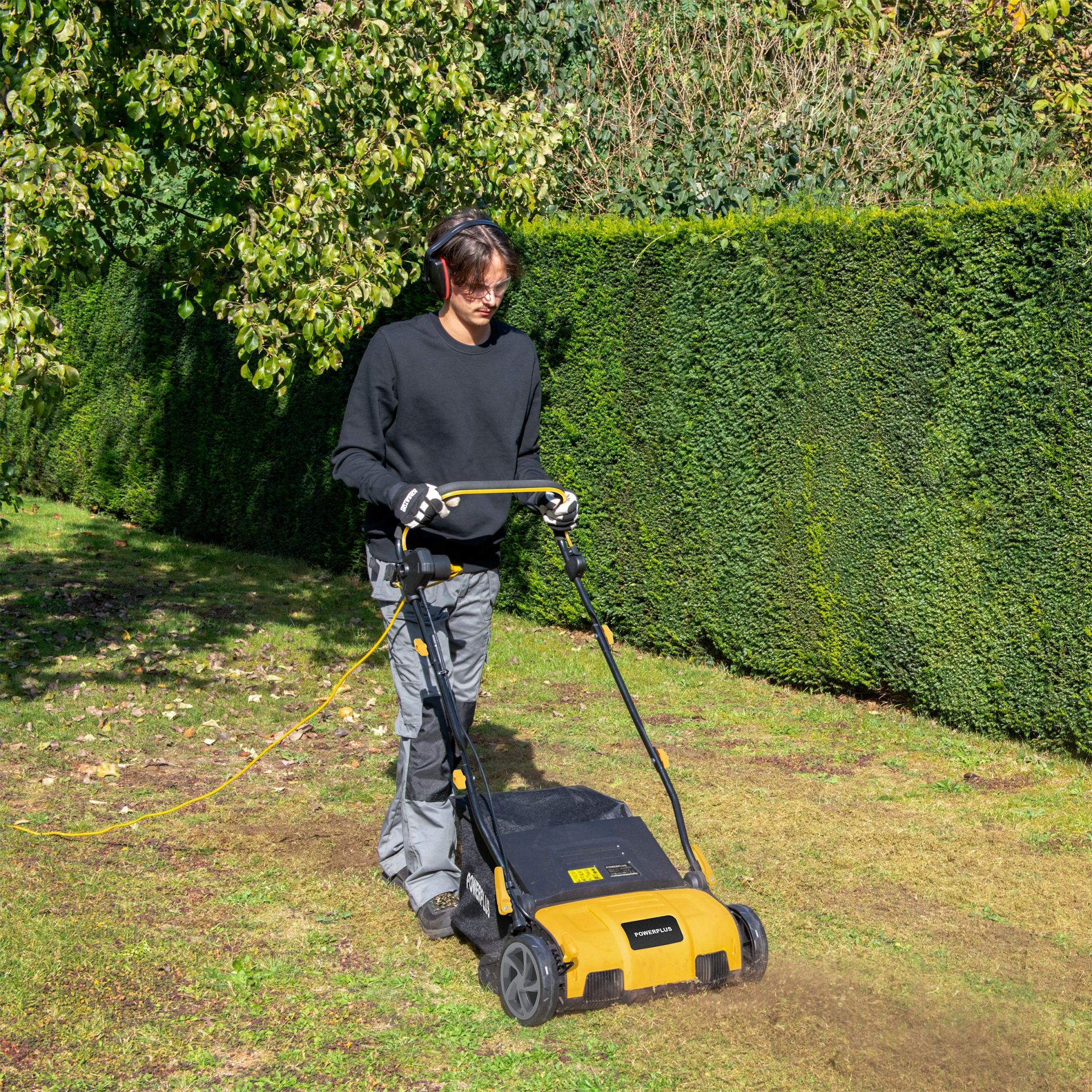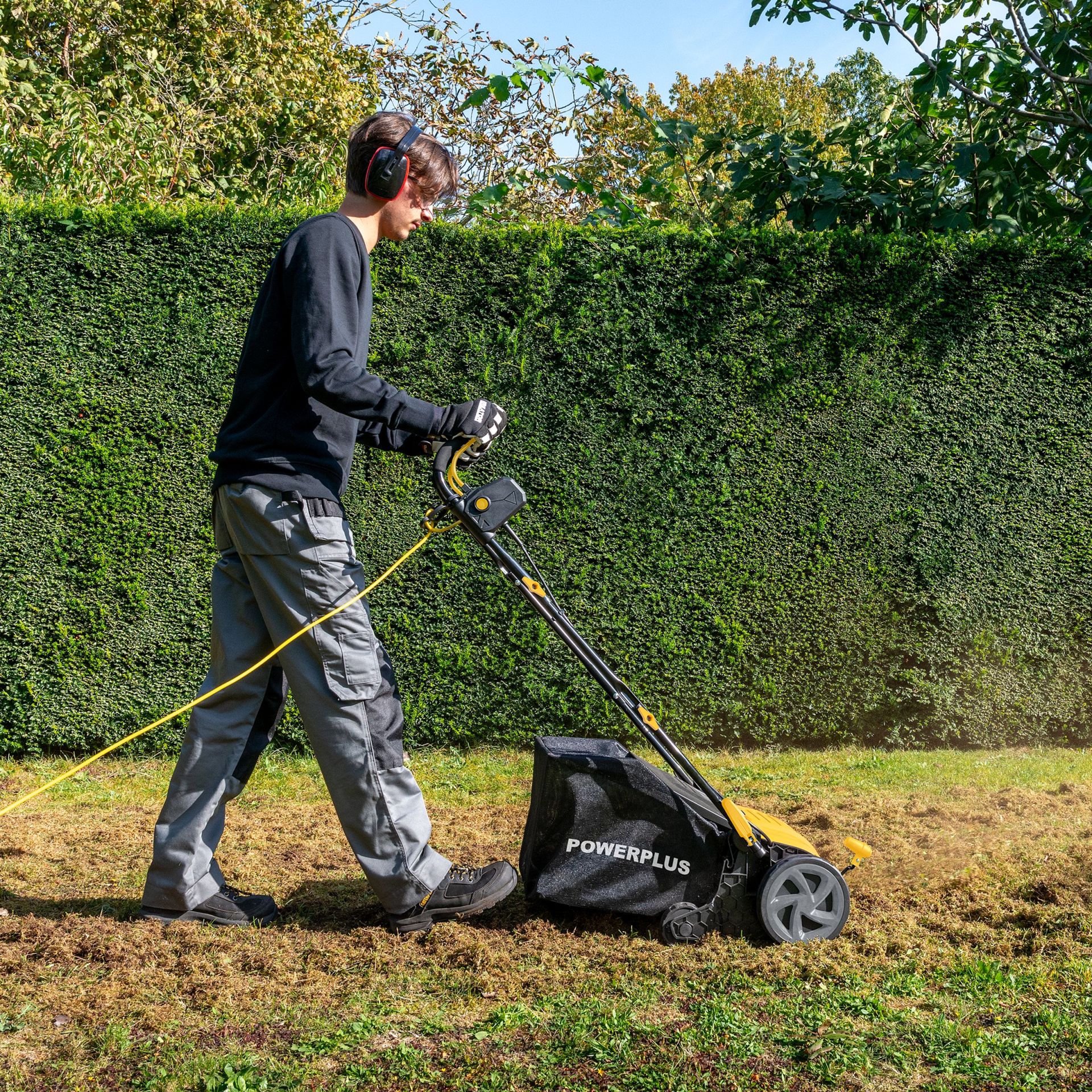 Deze POWXG75160 heeft een werkbreedte van 360 mm wat hem perfect maakt om middelgrote tot grote grasperken tot 800 m² te laten herleven.