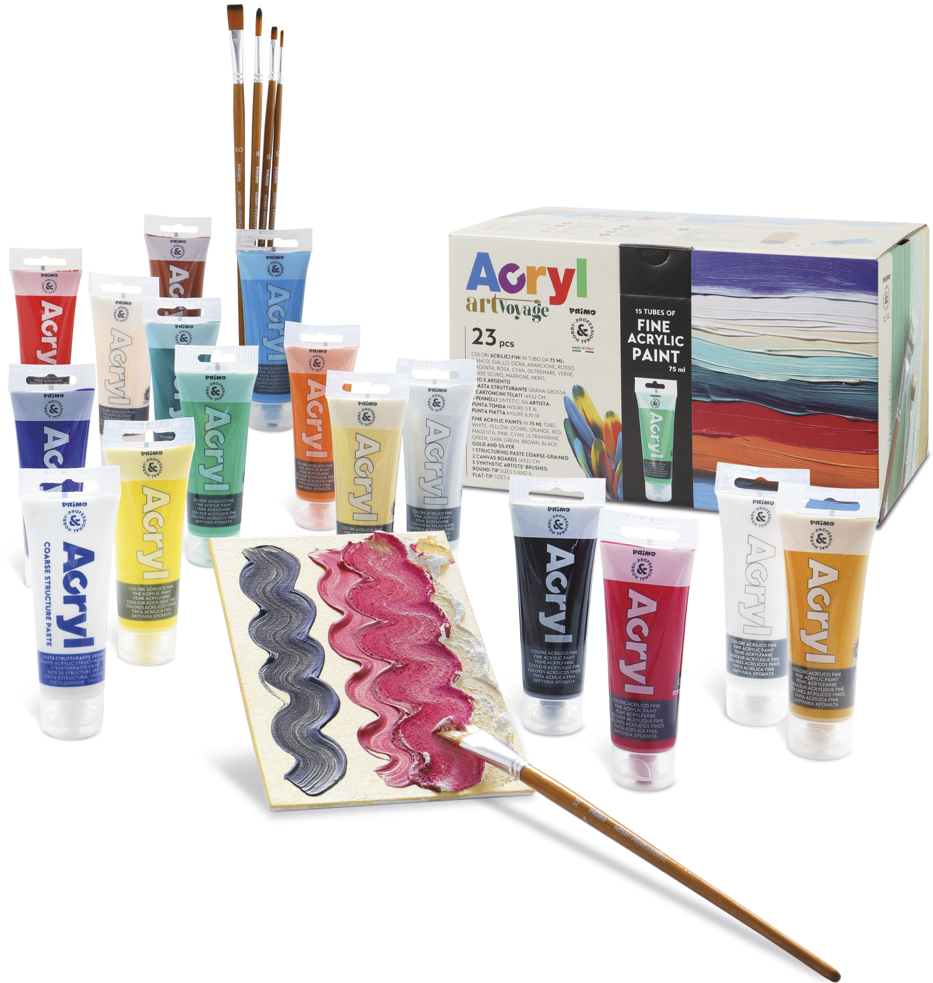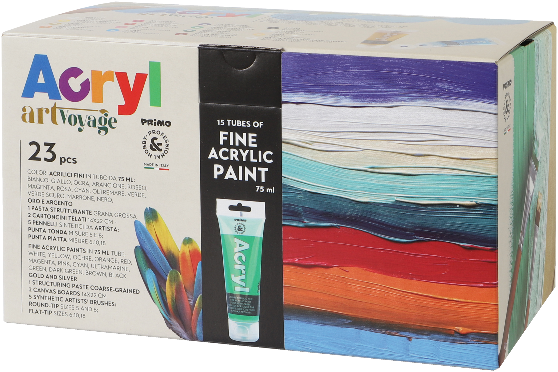 Primo Acrylverf 15 x 75 ml + 2x Canvas + 5 Penselen - Promoset