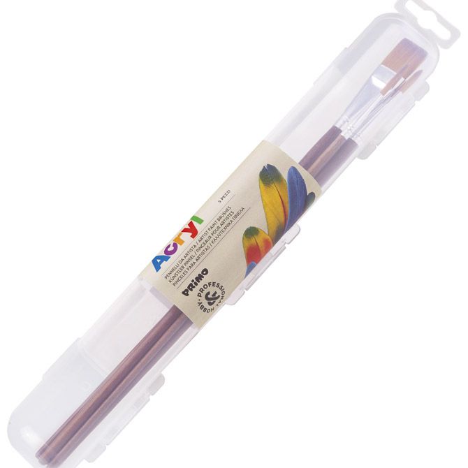 Primo Penselen Set Acrylverf Rond en Plat - 5 stuks in Koker