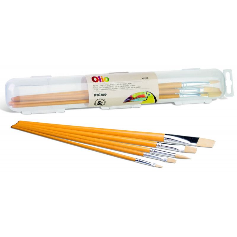 Primo Penselen Set Olieverf Rond en Plat - 5 stuks in Koker