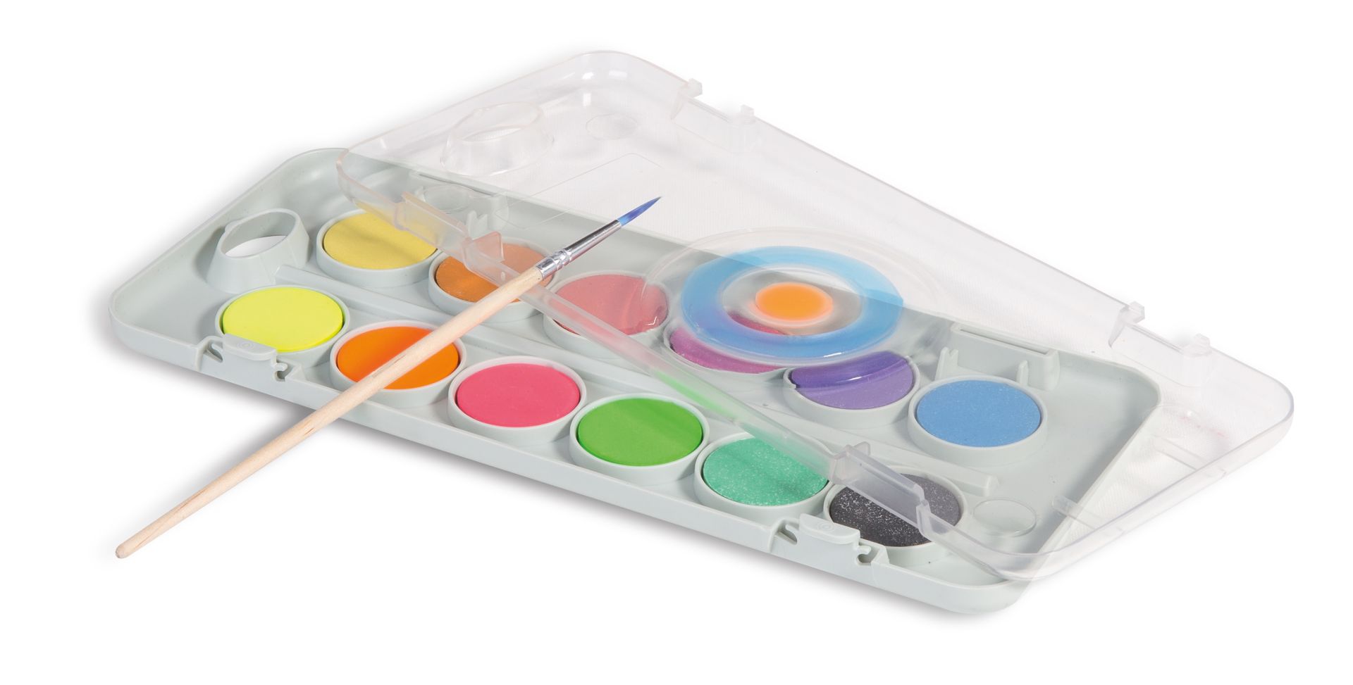 Primo Plakkaatverf 8 metallic Kleuren + 4 Fluo Nappen + Mengpalet + Penseel