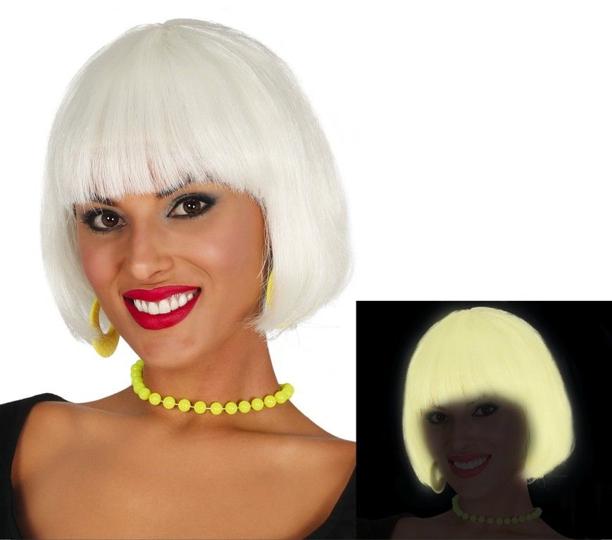 Pruik Kort Wit Glow In The Dark
