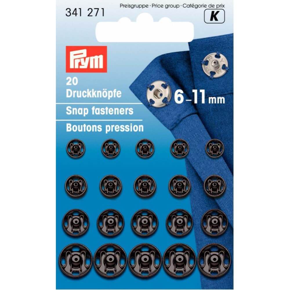 Prym Aannaaidrukknoop Messing 6-11 mm Zwart - 20 stuks