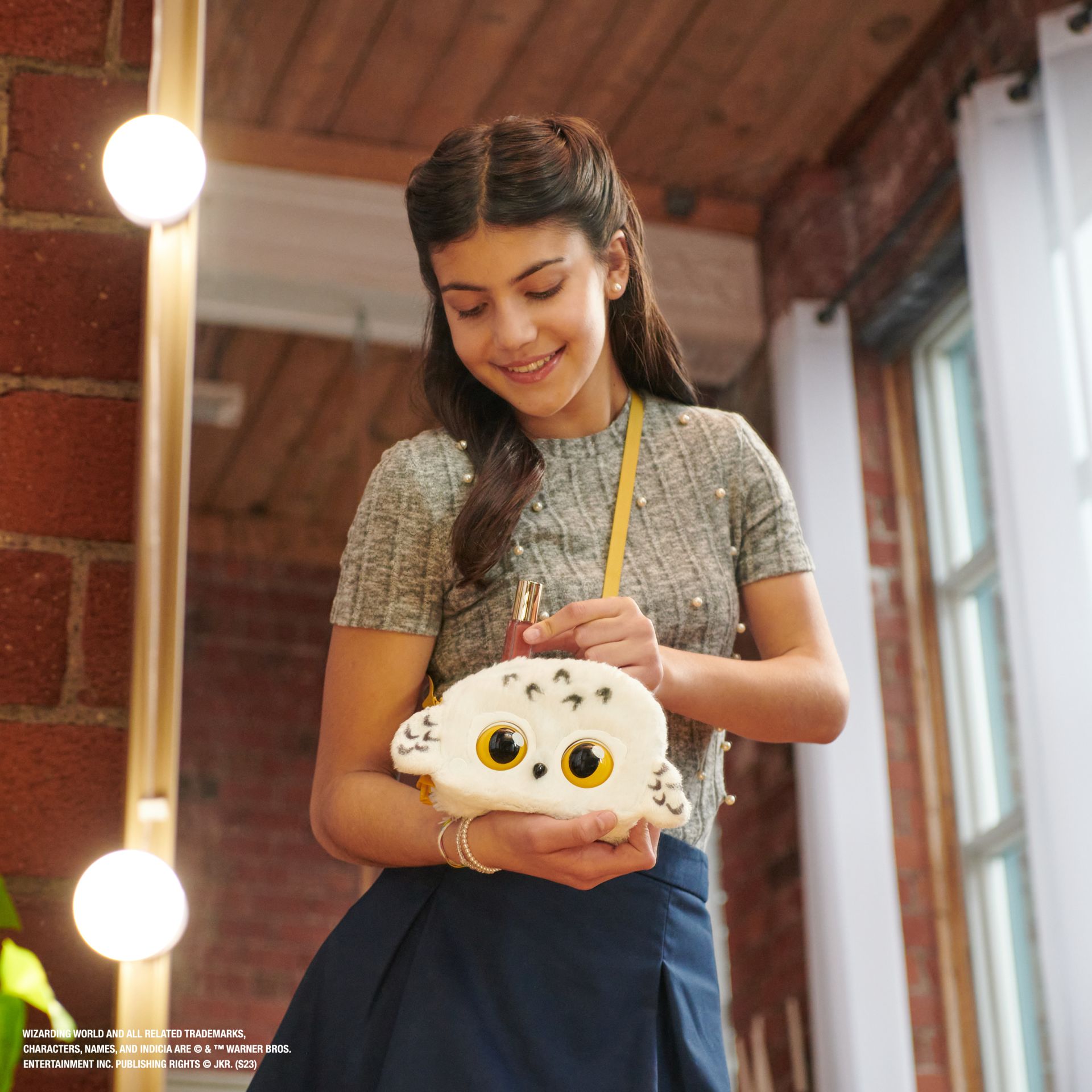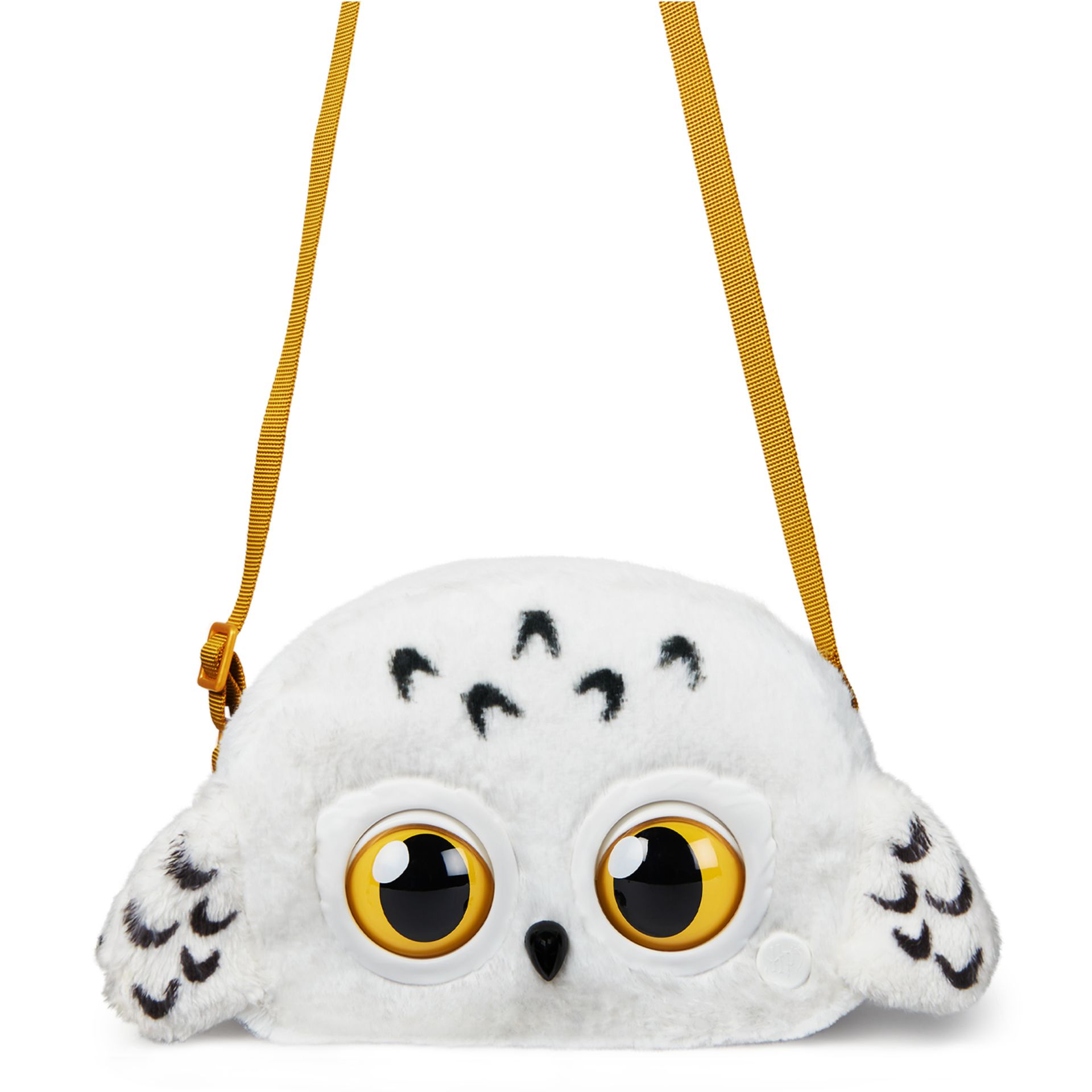 Maak je look helemaal af met een mooi accessoire: de Wizarding World Harry Potter Hedwig Purse Pets. Deze betoverende en modieuze interactieve sneeuwuiltas heeft talloze stijlvolle details die de iconische uil van Harry Potter tot leven laten komen. Hedwig reageert op je aanraking, knippert met haar ogen en heeft meer dan 30 magische geluiden en reacties. Ontdek Hedwigs zachte en gevlekte pluchen vacht en vleugels, haar expressieve gouden ogen, de verstelbare metalen schouderband en het gouden Magical Minis Harry Potter-bedeltje met clip. Door de details van Hedwig en de band van 106,7 cm lang is deze schoudertas de perfecte metgezel voor kinderen en Wizarding World-fans van alle leeftijden. Als je op een betoverend avontuur gaat, zal je Hedwig Purse Pets knipperen en geluiden maken als ze met je communiceert. Als je over haar voorhoofd aait, begint ze blij te kirren en te krassen. Ontgrendel meer leuke manieren om te spelen door op het Harry Potter-logo te drukken. Hedwig speelt een nummer af als je haar van de magische modus in de vliegmodus zet. Houd haar voorhoofd vast voor nog meer geluiden en hoor hoe ze met haar vleugels klappert. Als je Hedwig blijft vasthouden, opent ze haar ogen en reageert ze met herkenbare uilengeluiden. Je kunt Hedwig ook te eten geven door haar voorhoofd aan te raken – je weet meteen of ze het eten lekker vindt. Speel je favoriete Harry Potter-scènes na met Hedwig aan je zijde. Open haar snavel en leg er een brief in. Haar snavel met veermechanisme werkt als een clip, waardoor ze de brief echt kan vasthouden. Hedwig is ca. 13,1 x 17 x 6,1 cm (hxbxd) groot en heeft meer dan genoeg plek voor je favoriete Magical Minis Harry Potter-figuren (poppen afzonderlijk verkocht), zodat je overal de leukste verhalen kunt naspelen. Inclusief 3 AAA Duracell-batterijen. Wizarding World Harry Potter-speelgoed is een must-have cadeau voor kinderen die van verzamelvoorwerpen, interactief speelgoed, toverstokken, actiefiguren, poppen en poppenaccessoires houden. Ze zijn geweldig als verjaardagscadeau, kerstcadeau, schoencadeau of als cadeau voor een andere gelegenheid. Laat je stijl zien en breng je look tot leven met de interactieve Wizarding World Harry Potter Hedwig Purse Pets.