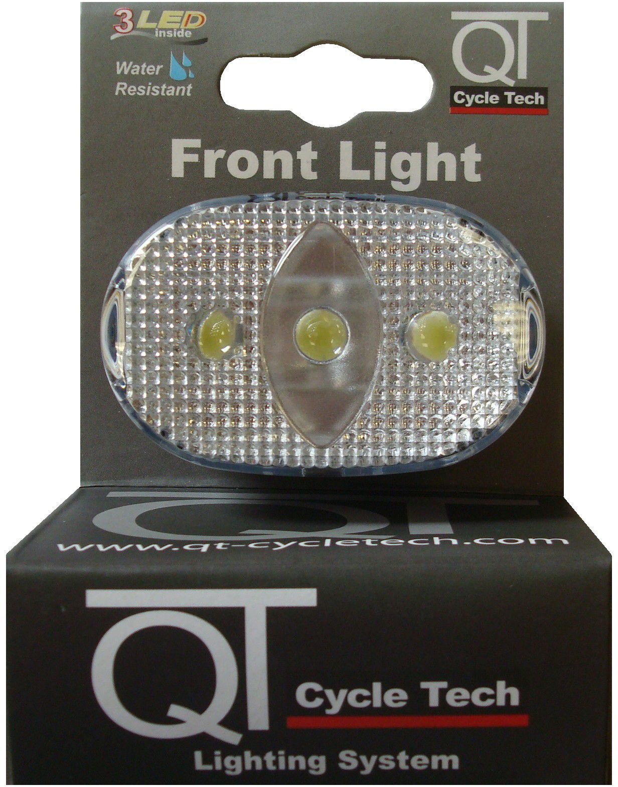 QT CycleTech voorlicht wit 3 LED's Batterijen en bevestiging inbegrepen