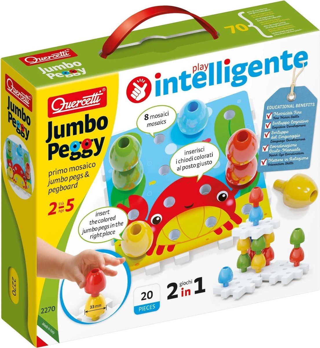 Quercetti Jumbo Peggy Insteekparels 20 Grote Pinnen