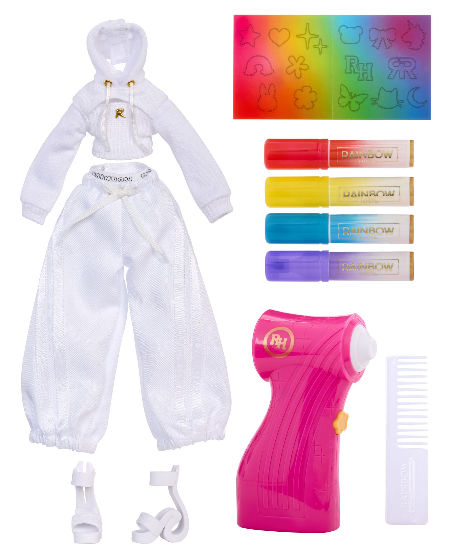 Het is Rainbow High’s missie om kleurrijk en creatief zelfvertrouwen te stimuleren... en nu kun je je eigen visie tot leven brengen met de gloednieuwe Airbrush & Create-modepop om zelf te ontwerpen! Het is nog nooit zo makkelijk geweest om je eigen Rainbow High-pop te ontwerpen.