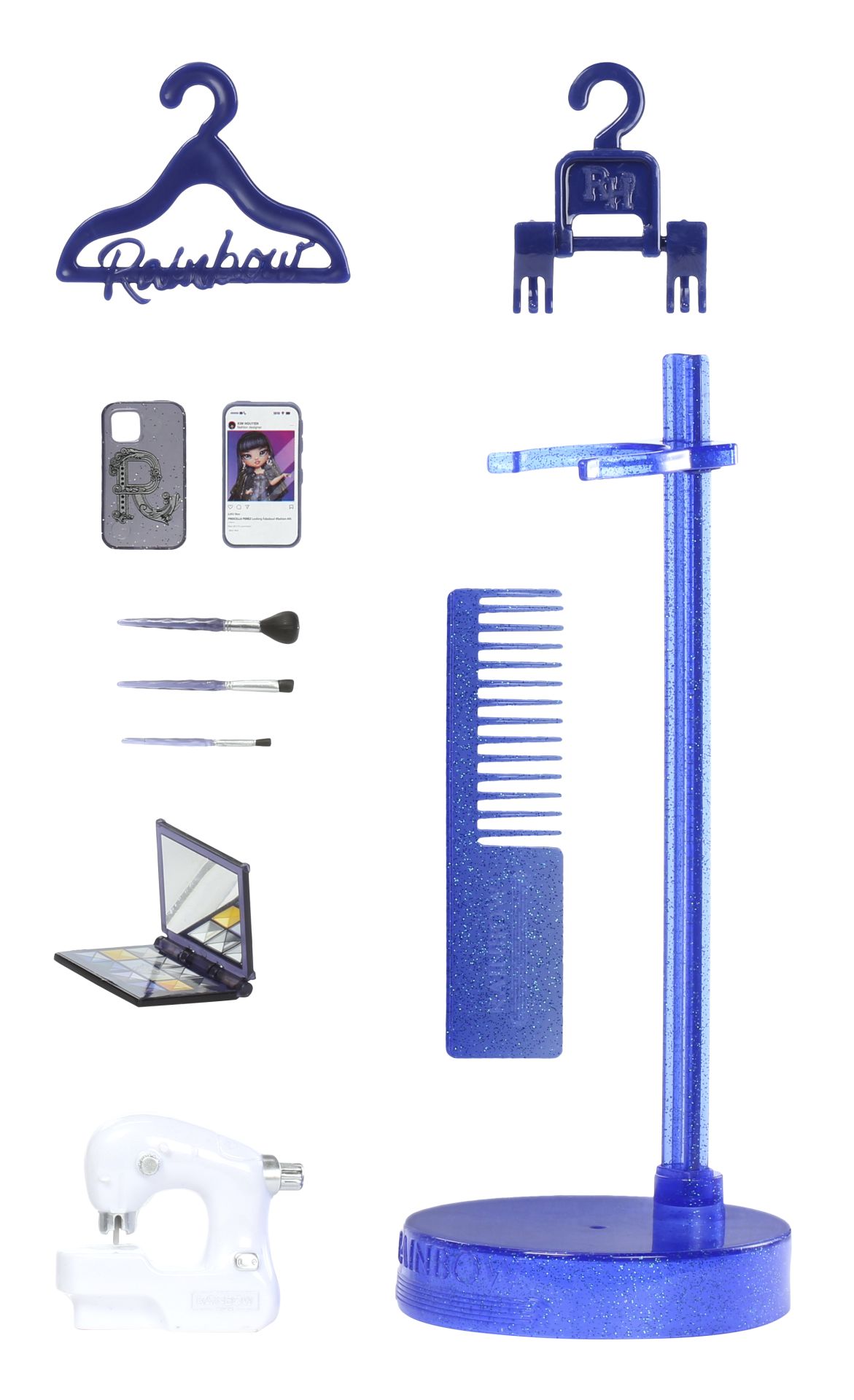 ACCESSOIRES INSPIREREN CREATIVITEIT: de leerlingen op Rainbow High zijn creatief en hebben een hoofdrichting gekozen die bij hun passie aansluit. Kim is modeontwerpster. Ze heeft alles bij zich voor elk modenoodgeval: een naaimachine, make-uppalet en schattige mobiel met hoesje. Met deze speelset kunnen kinderen eindeloos veel plezier beleven en fantasierijke verhalen verzinnen