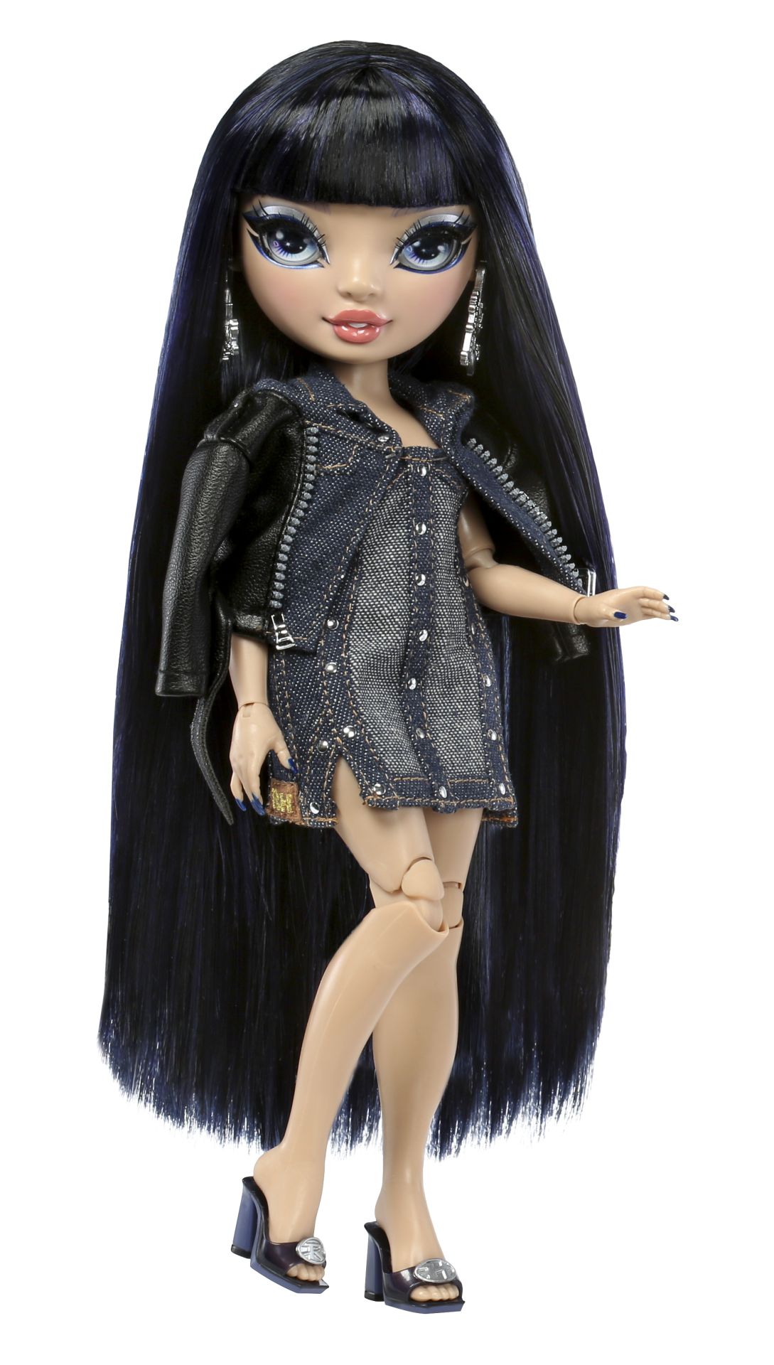 BUITENGEWOON IN HET BLAUW - Kim is van top tot teen gekleed in het denimblauw. Haar unieke stijl komt tot uiting in een denimblauwe jurk met studs, denimjack met gesp, oorbellen, een paar muiltjes met hak en superleuke accessoires. Ook heeft ze prachtig lang en recht, blauw haar met een schattige pony, échte lange wimpers en glazen ogen