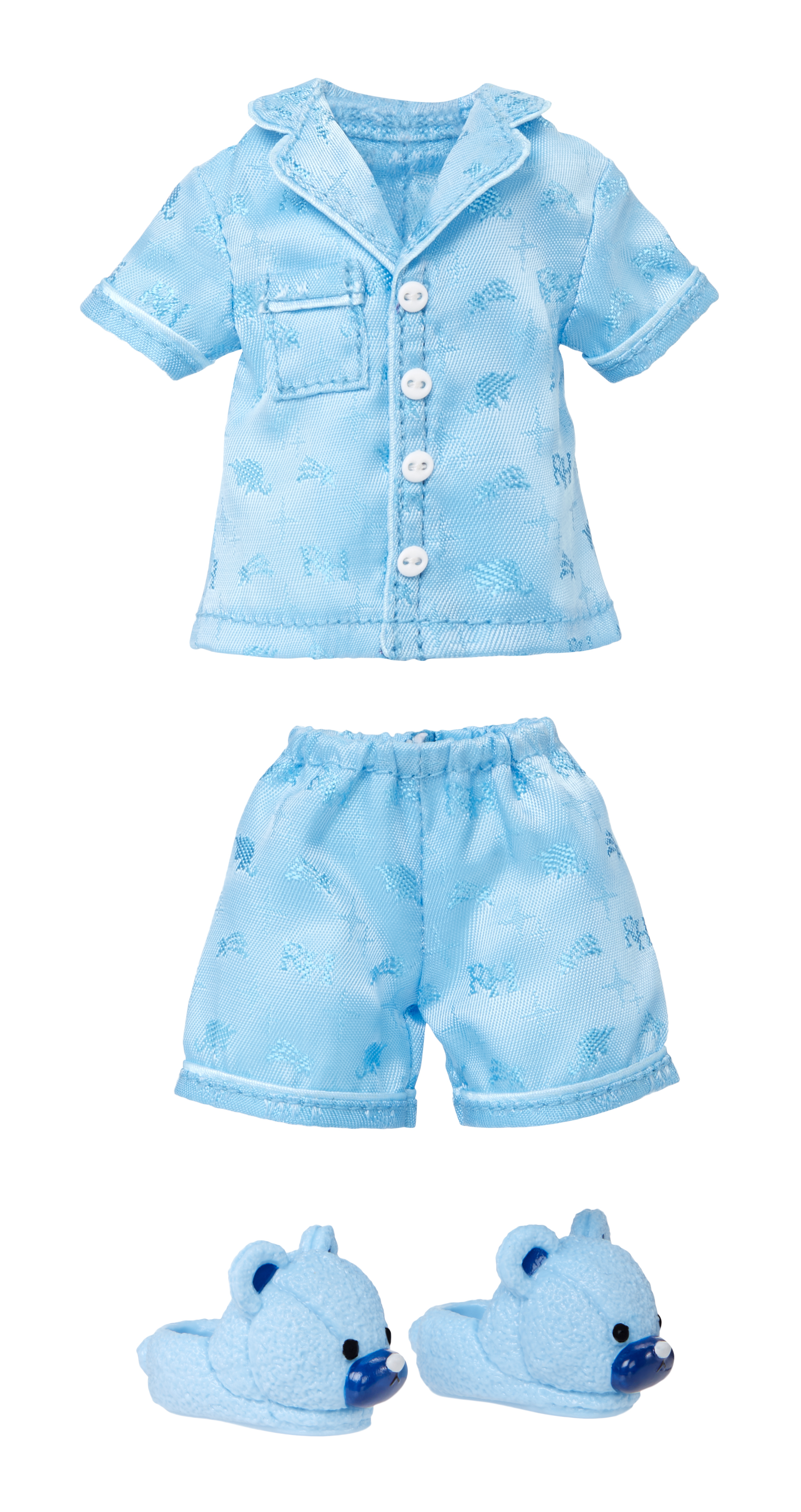 SCHATTIGE KENMERKEN: Skyler draagt een schattige, tweedelige, satijnen pyjamaset en bijpassende, blauwe berenslippers. Ze heeft een supermooi, jonger gezichtje, schitterend lang, blauw haar met grove krullen, lange wimpers en glazen ogen