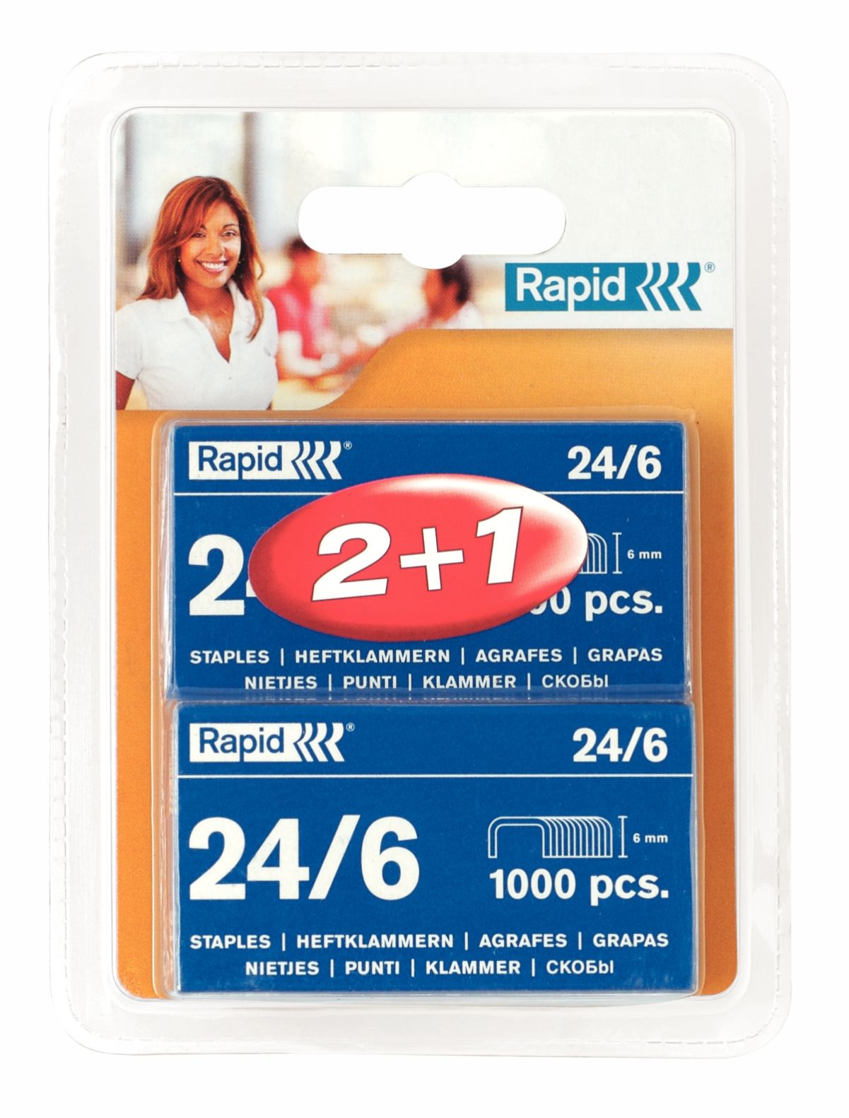 Rapid Nietjes 24/6 1000 Stuks Set 2+1 Gratis - tot 20 Vellen 80g
