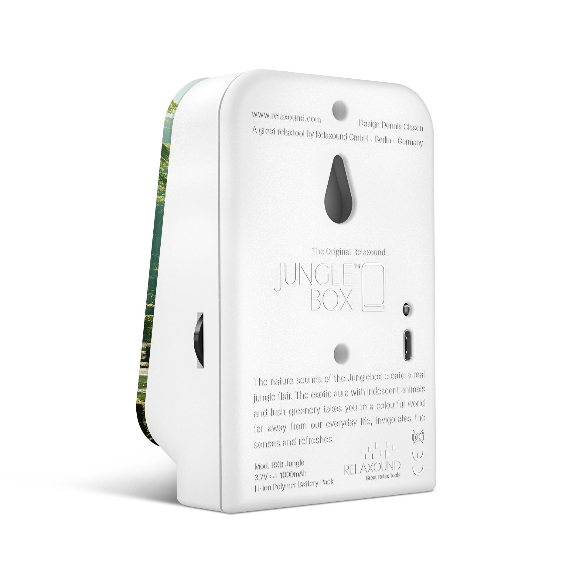 Relaxound Junglebox Maliau - Box met Junglegeluiden 2 min. - 8x4.7x12.2 cm - met Bewegingssensor - Oplaadbaar via USB-C (incl.) - Wit/Design