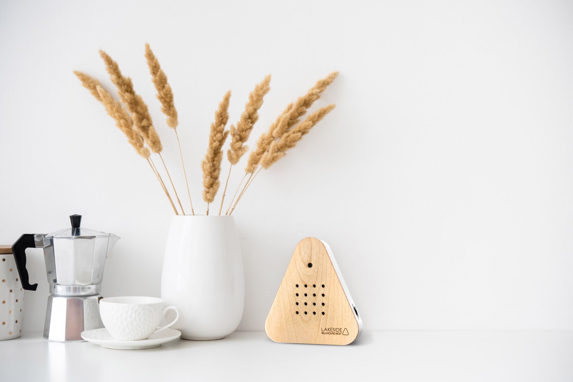 Relaxound Lakesidebox Oak - Box met Natuurgeluiden 2 min. - 11x2.8x11.8 cm - met Bewegingssensor - Oplaadbaar via micro-USB (incl.) - Wit/Hout