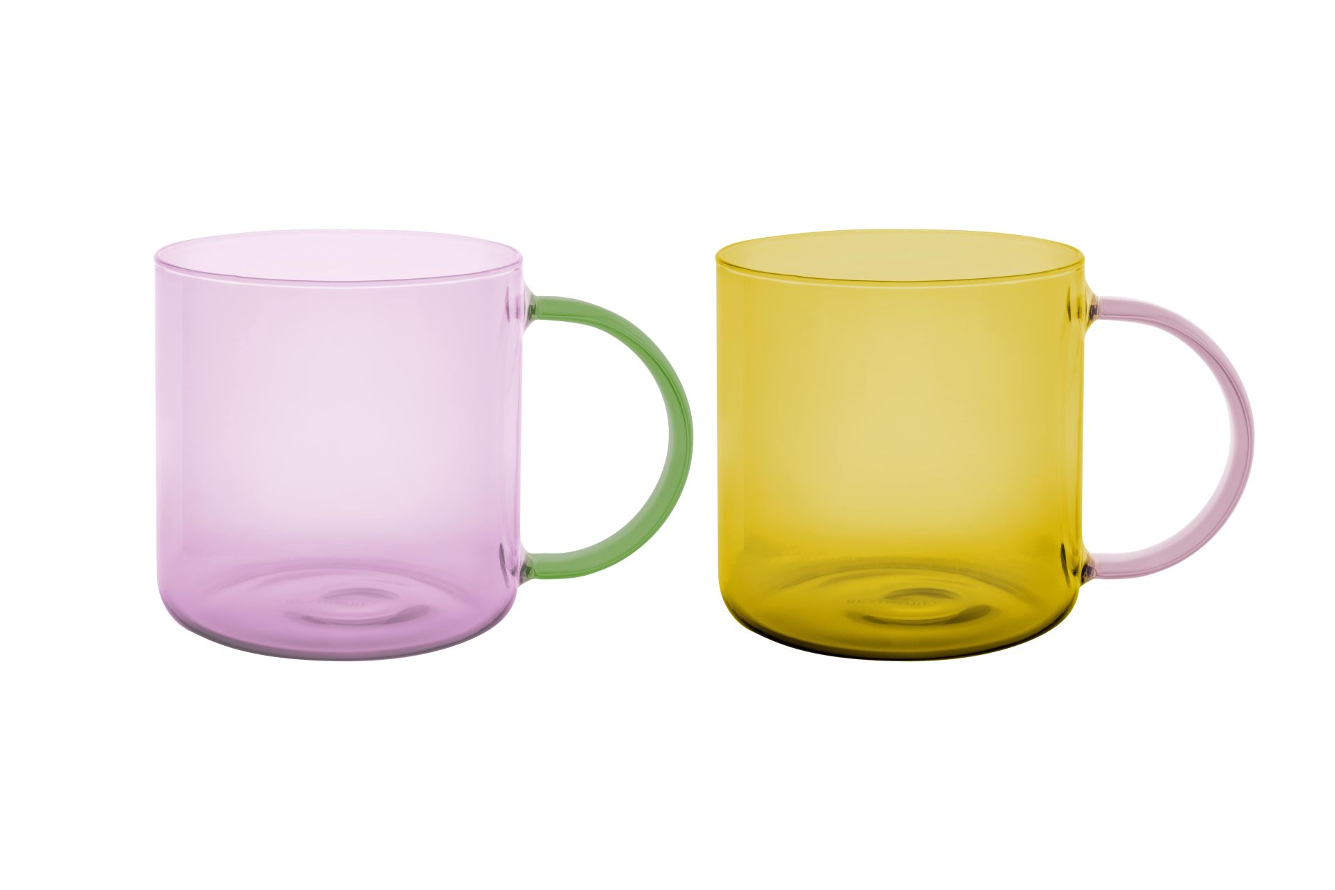 Remember Mok Fred 500ml set 2 stuks - Borosilicaatglas - 12.9x9 cm - Roze/Geel