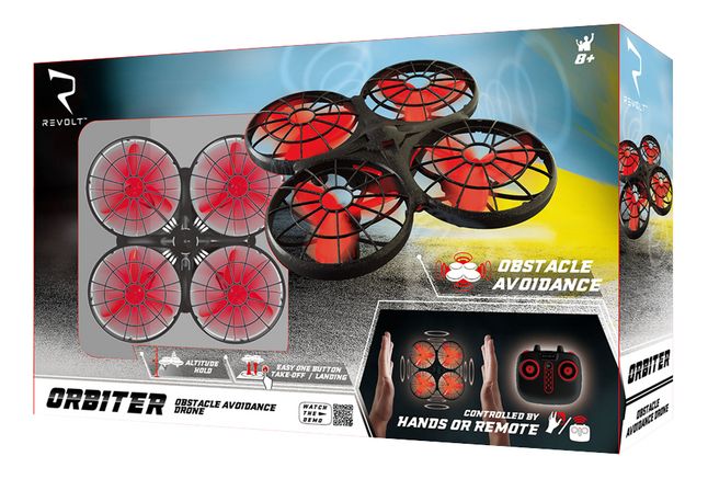 Revolt Orbiter Obstacle Avoidance Drone, RC of hand bediening, 3.7 V. USB laden