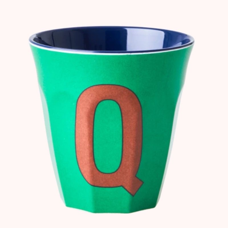 Rice Cup Melamine Letter Q Groen - 9x9 cm