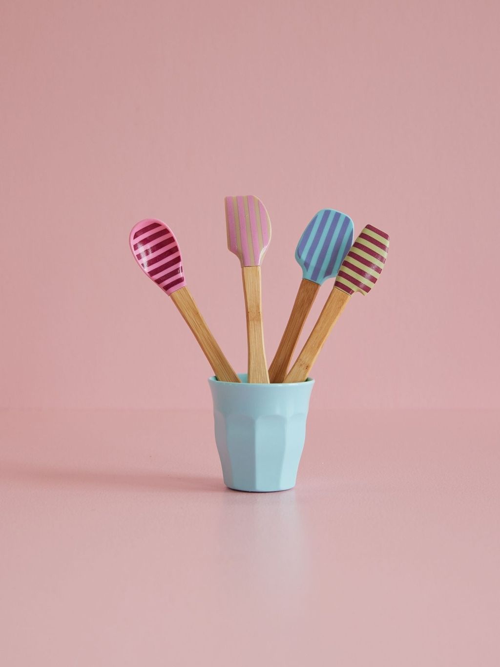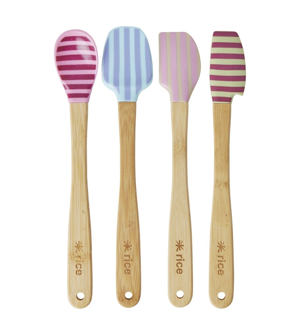 Rice Spatel Silicone 21 cm set 4 stuks - met Bamboe Handgreep