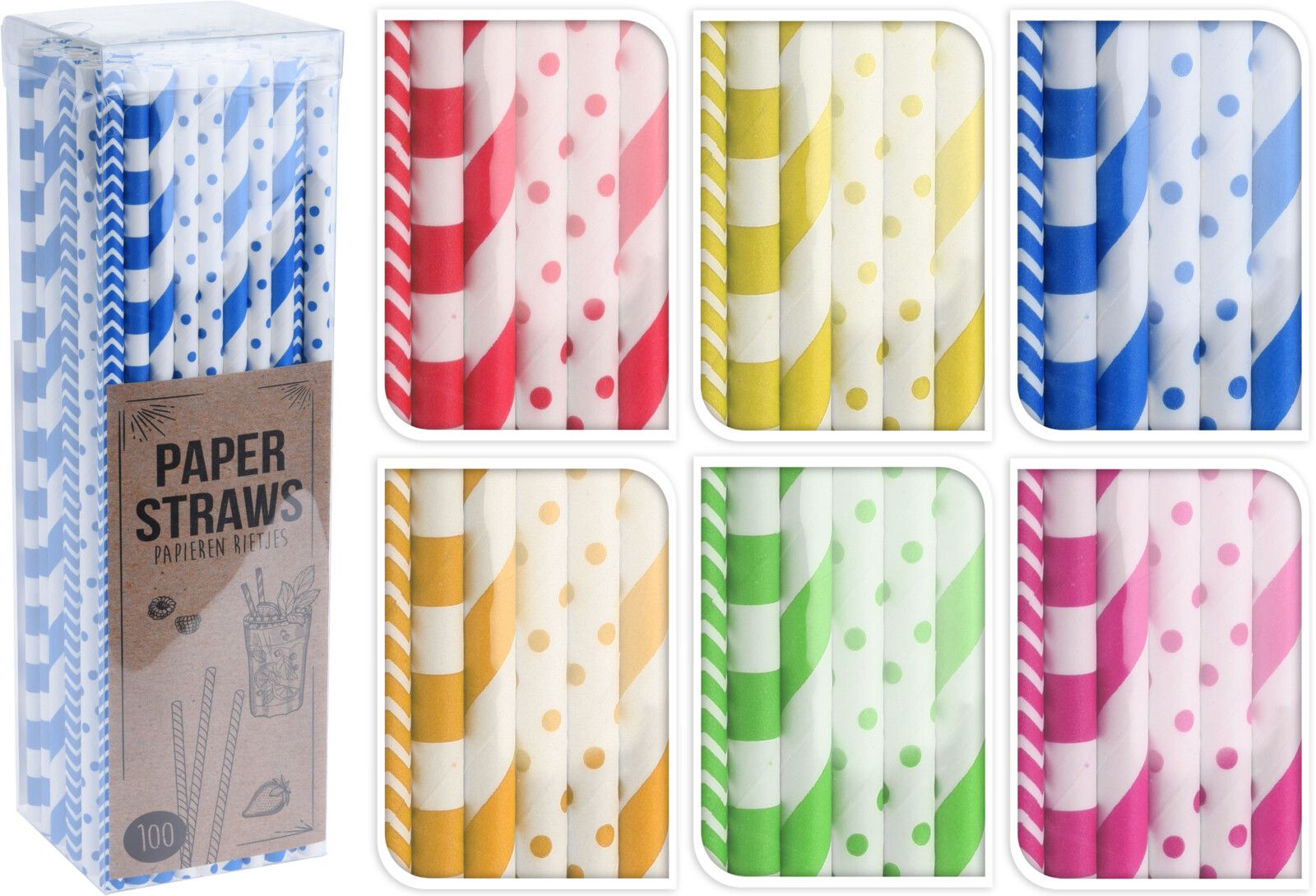 Rietjes Papier set 100 stuks 19.5 cm - assorti - prijs per set
