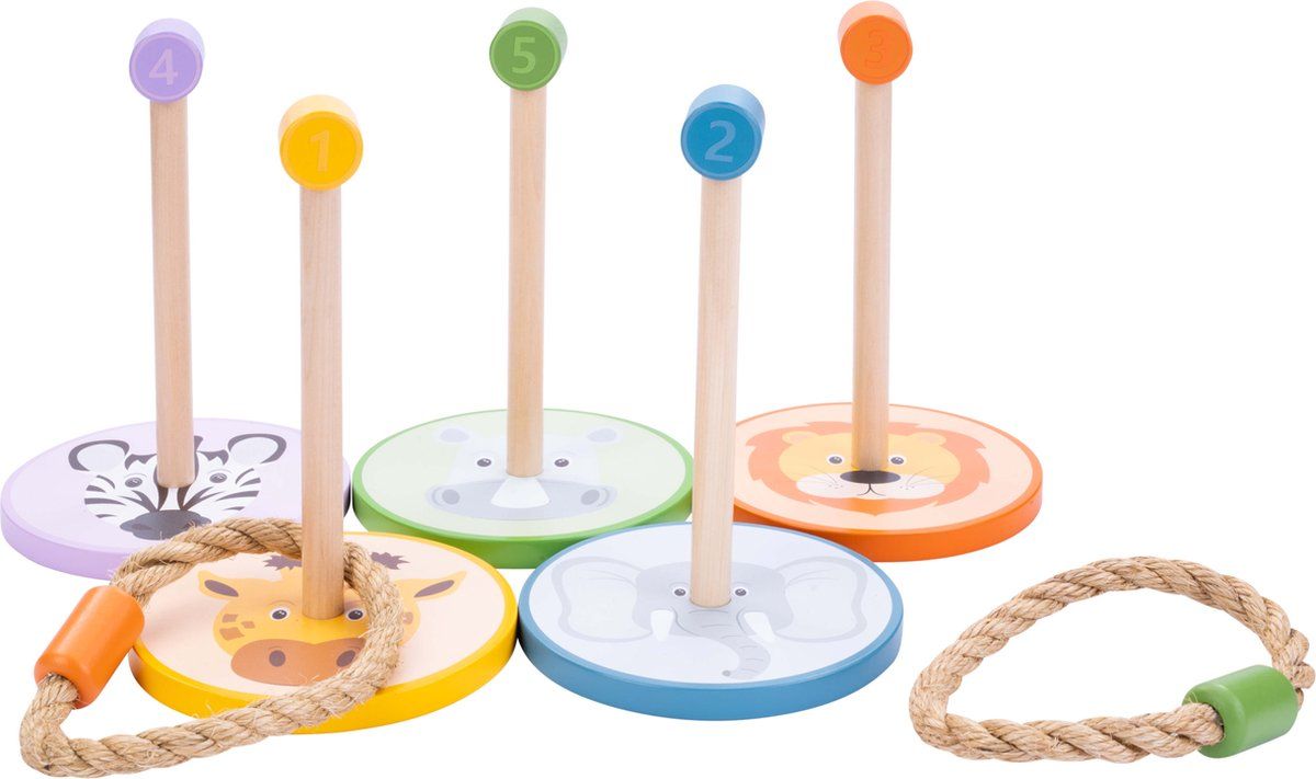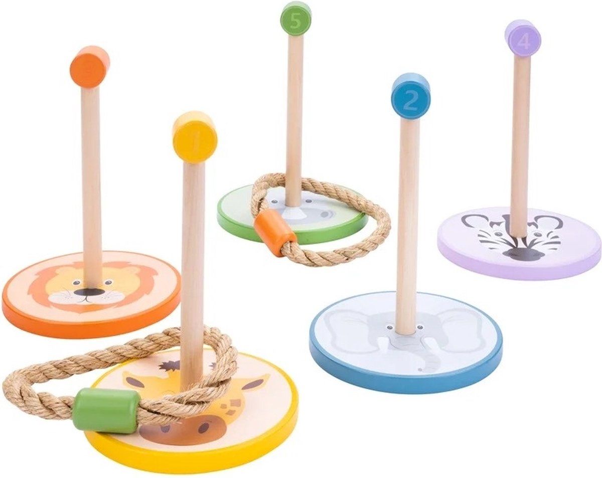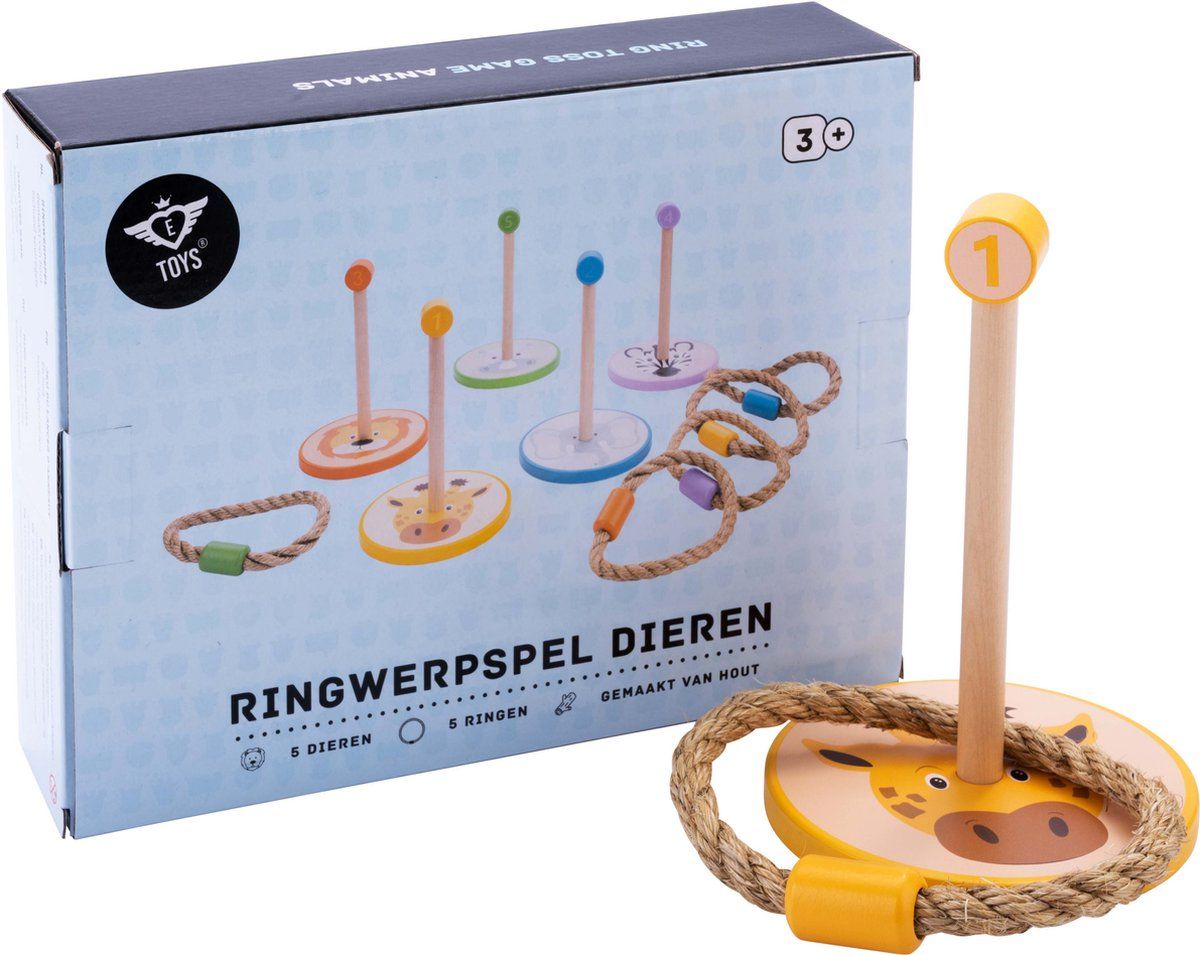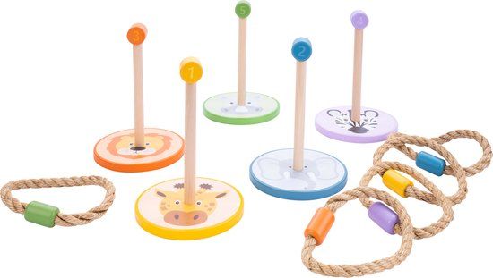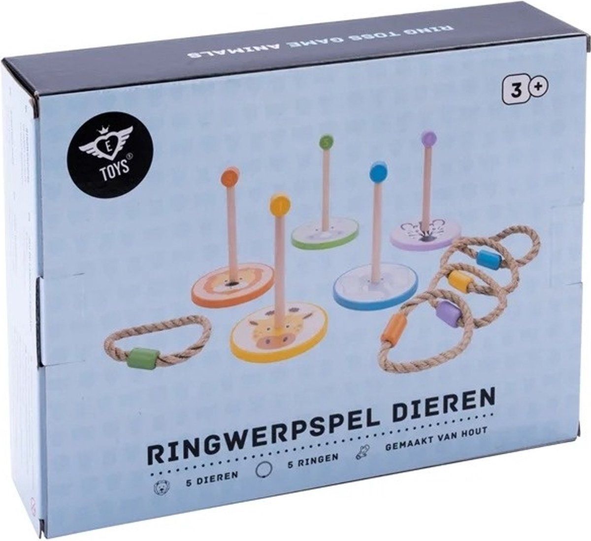 Ringwerpspel dieren, 5 dieren en 5 ringen met verschillende kleuren