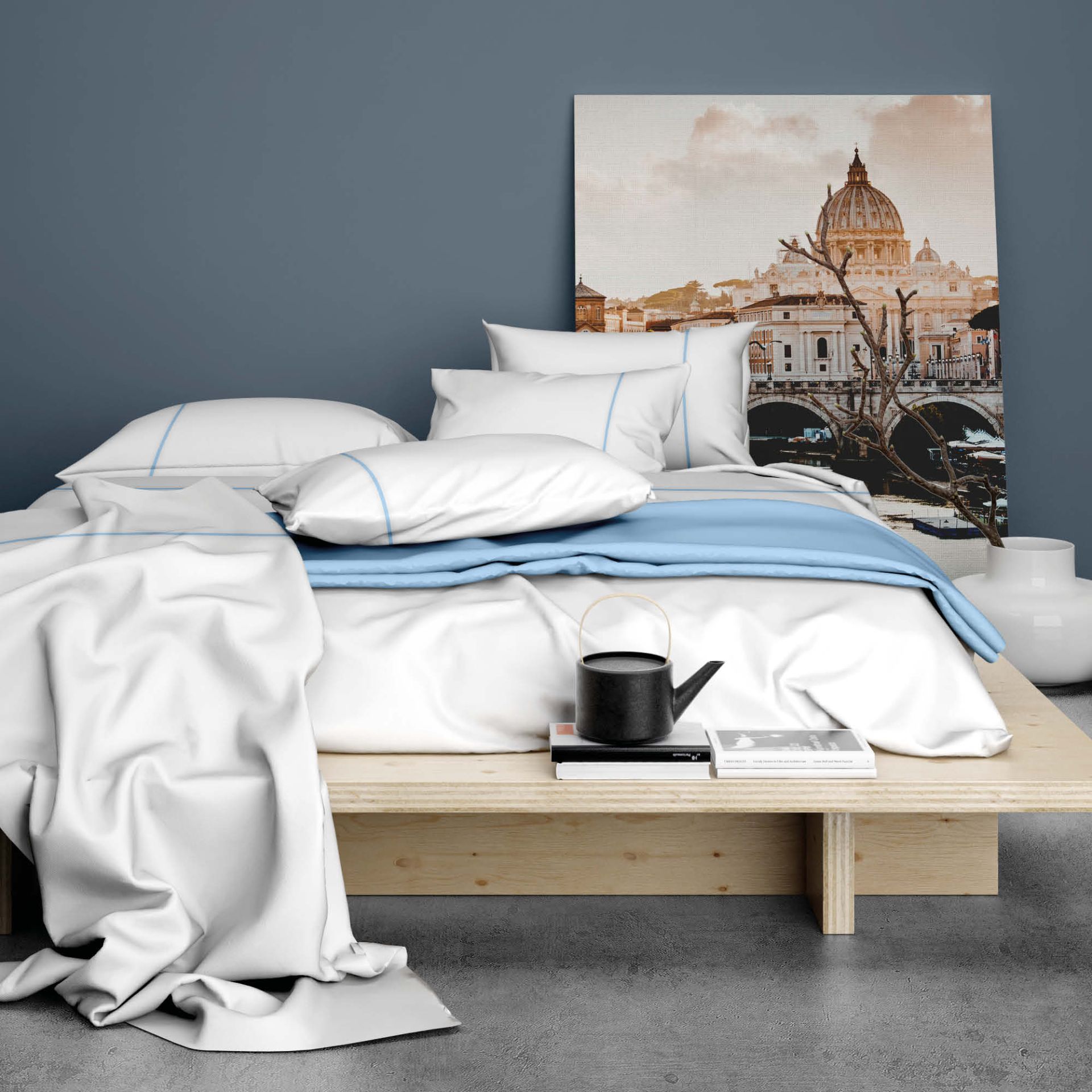 Romanette Basic Dekbedovertrekset 260x220 cm Katoen Wit Blauw met Paspel