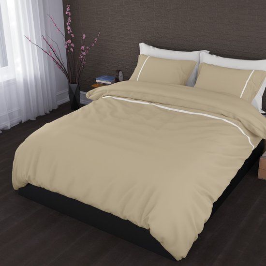 Romanette Dekbedovertrekset Duchesse 260x200-220 cm Flanel Sand met Witte Naad