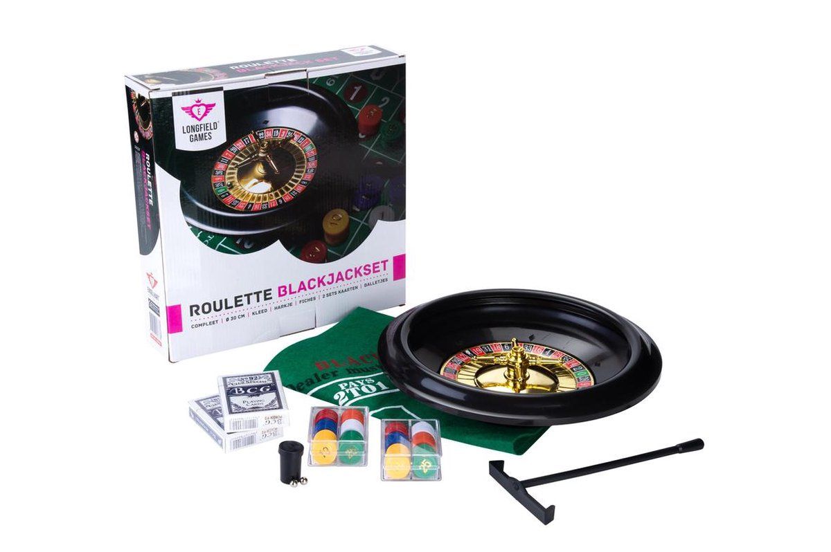 Roulette - black jack set 30 cm compleet Fiches, kaarten, kleed, hark