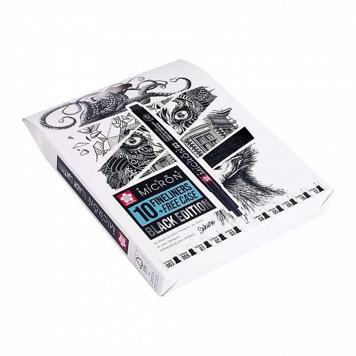 Sakura Pigma Micron Black Edition 10 pennen + etui Gratis - Zwart - diktes 003-005-01-02-03-04-005-08-10-12