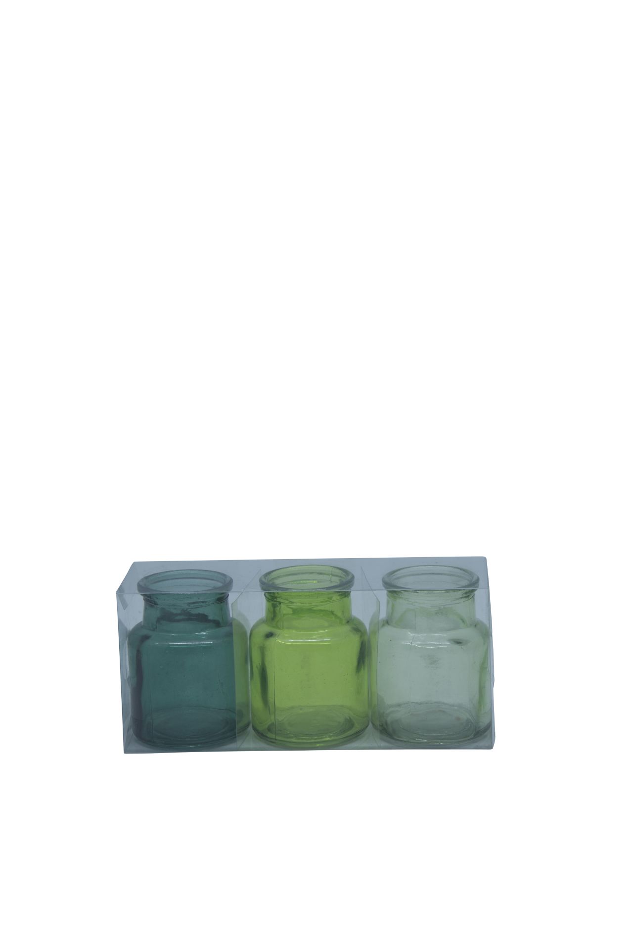 Sandra Rich Vaas Bottles Glas Lichtgroen 7.5x17.5x5.5cm - Set 3 Stuks