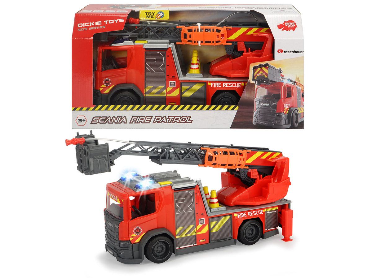 Scania Brandweerwagen 35 cm, spuit water licht en geluid,