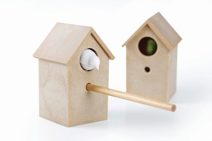 SCHERPER - CUCKOO - 10.6x6.5x6.6cm QUALY - BRUIN HUISJE / WITTE VOGEL