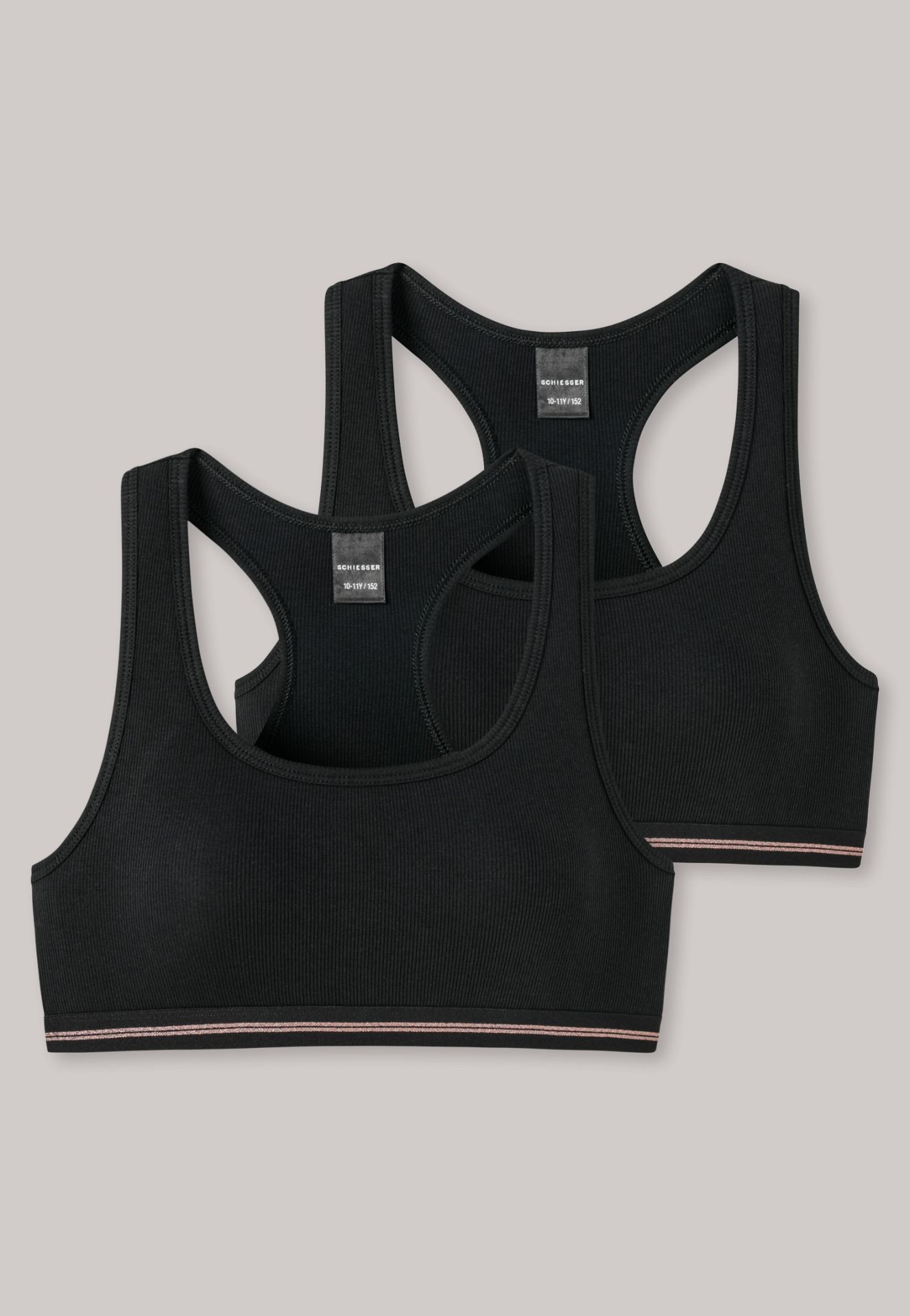 Schiesser Bustier Meisjes 2 stuks Rib Zwart maat 176/16J