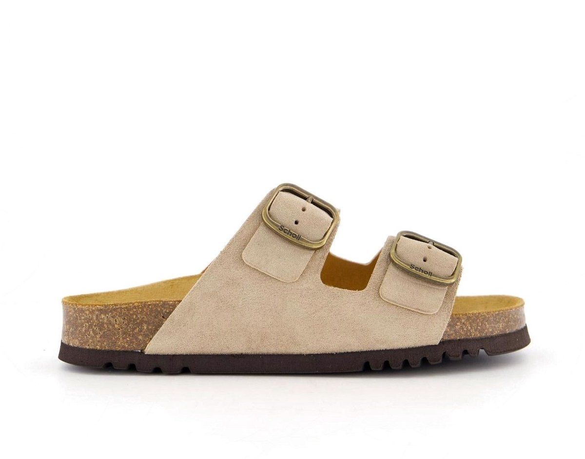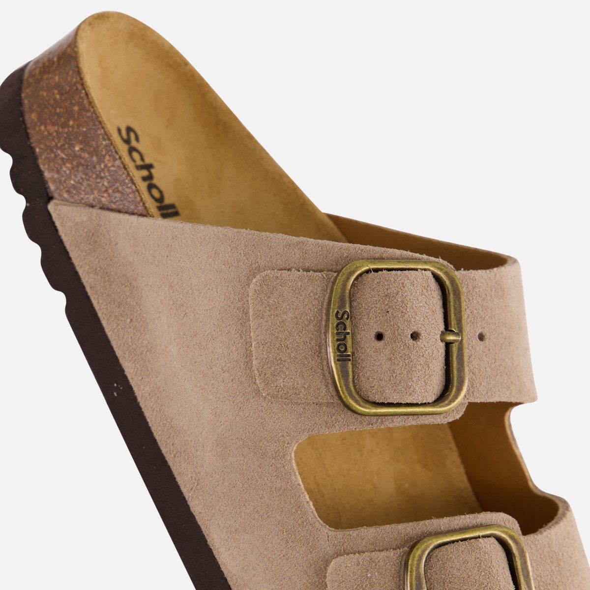 Scholl Slipper Dames Josephine 2 Gespen Suede Dark Beige - maat 38