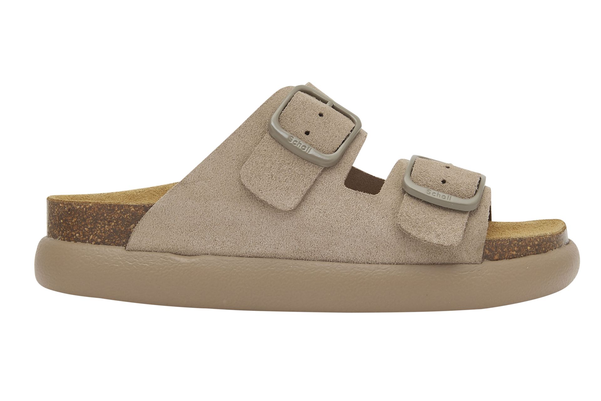 Scholl Slipper Dames Noelle Chunky 2 gespen Suede Dark Beige - maat 39