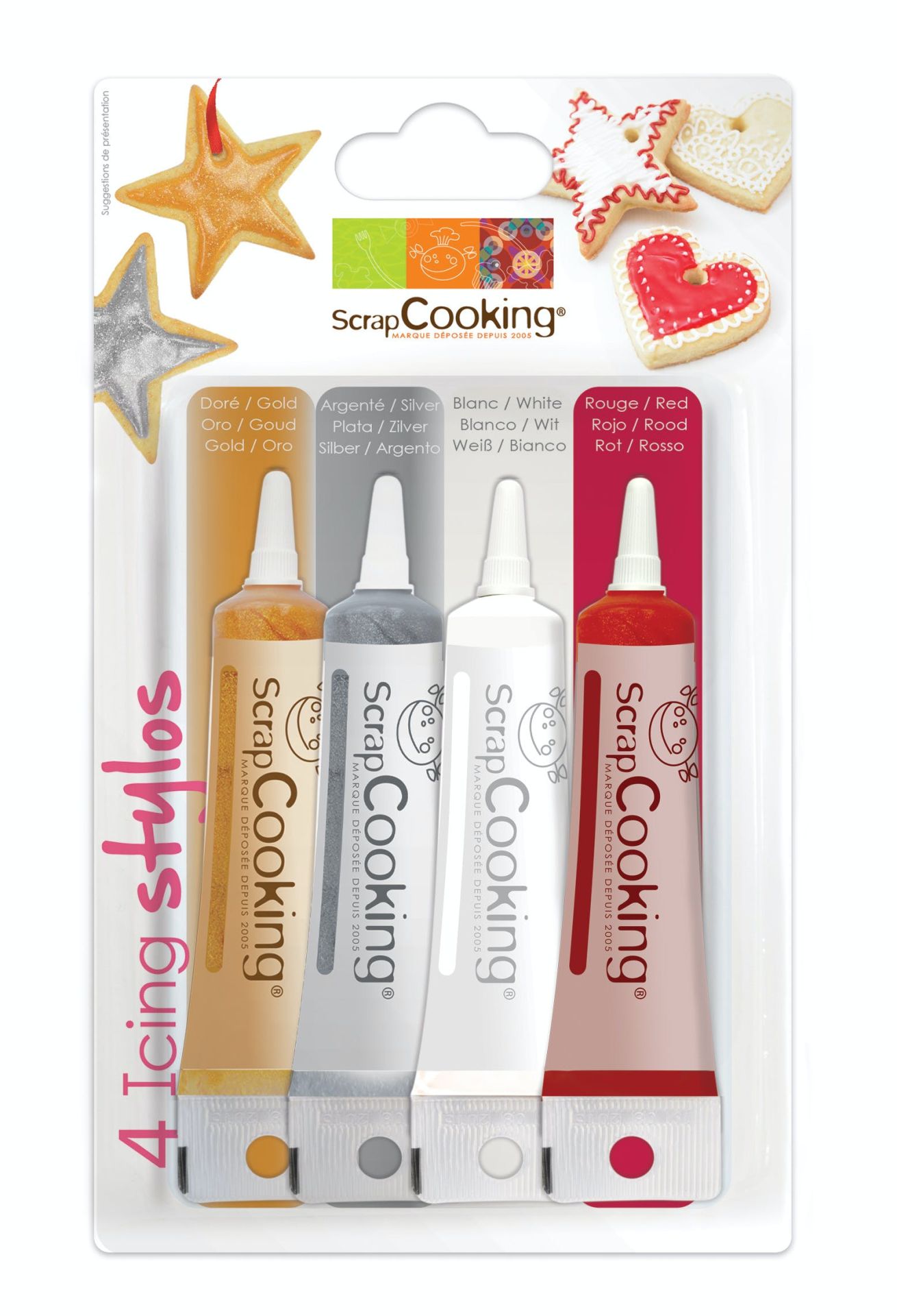 ScrapCooking Deco Icing Stylo 4 stuks - Goud/Zilver/Wit/Rood