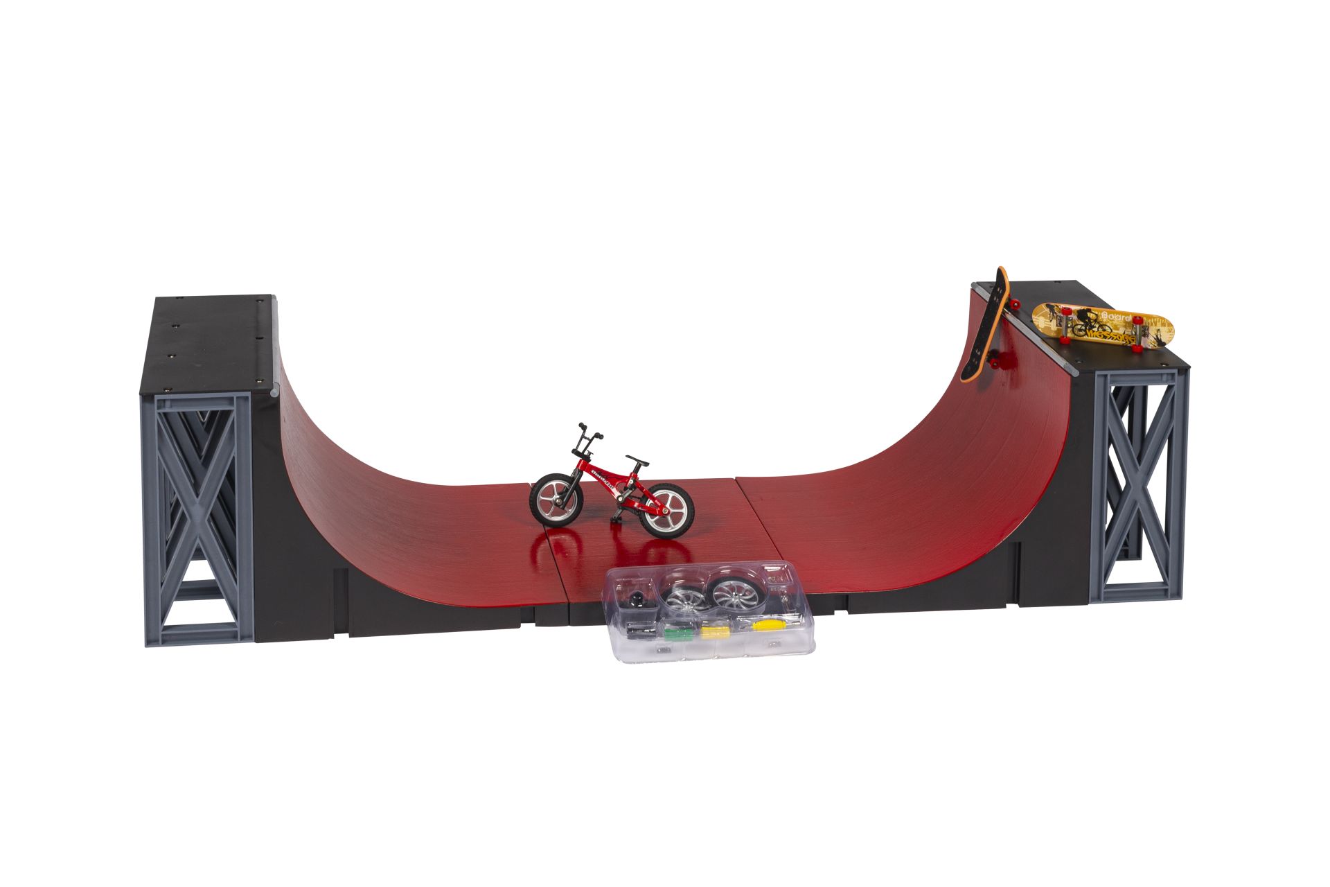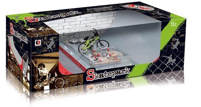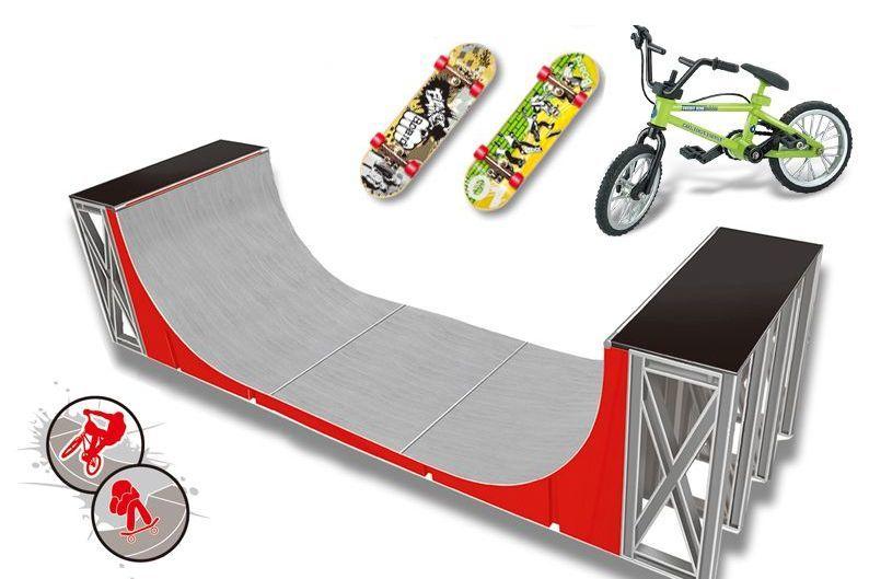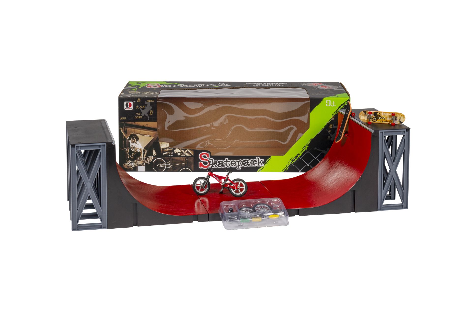 Skatepark Halfpipe met 2 Fingerboards en BMX