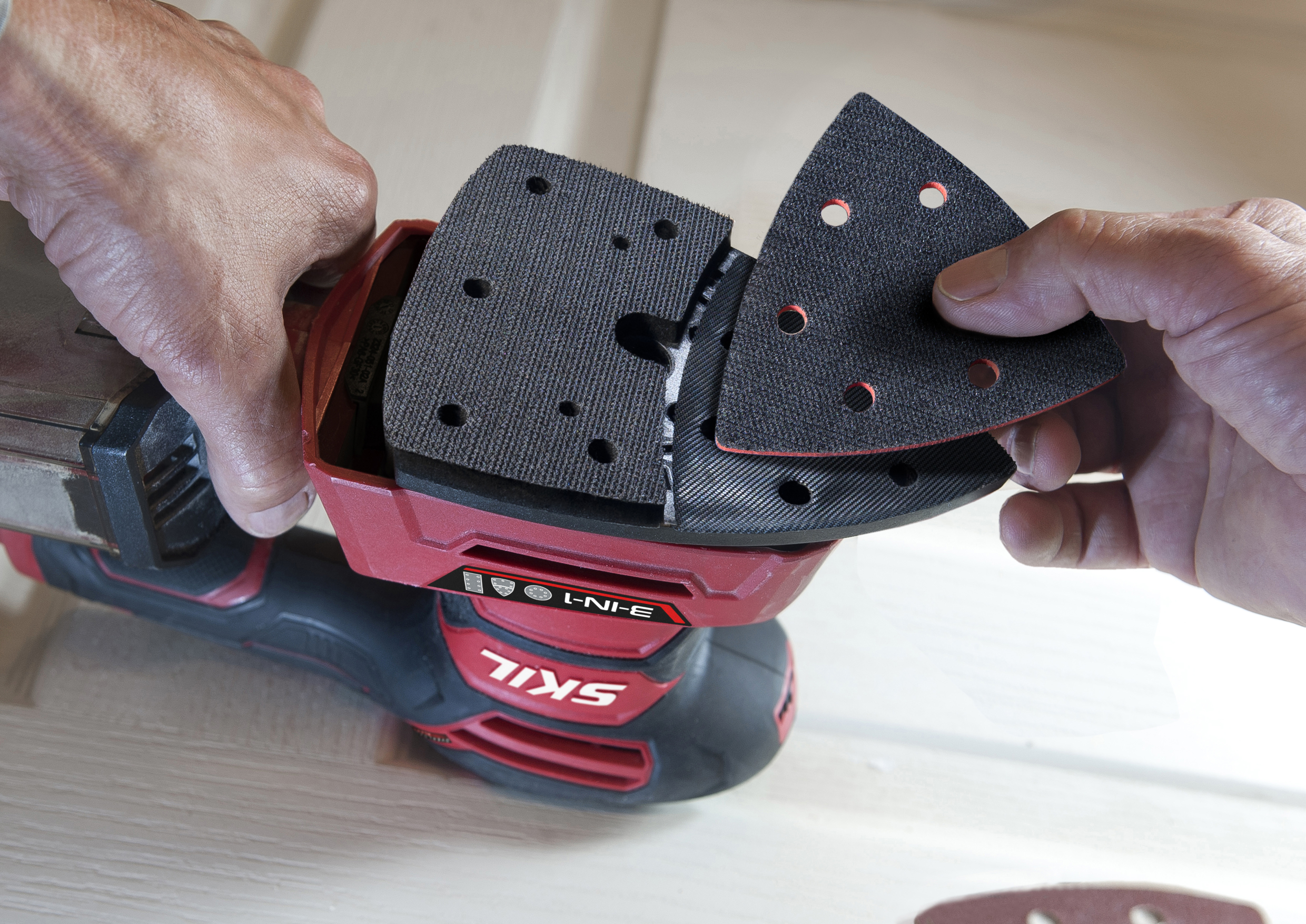 De SKIL 7280 is een krachtige multischuurmachine voor het schuren van diverse soorten oppervlakken. Het combineert drie verschillende schuurmachines in een: een vlakschuurmachine voor het schuren van de grootste oppervlakken, een excentrische schuurmachine voor het schuren van gebogen oppervlakken en de snelste materiaalafname, en een delta-schuurmachine voor hoeken en randen. Wisselen tussen de steunschijven is heel eenvoudig dankzij het 1-schroef-systeem. En dankzij de vooraf instelbare variabele snelheidsregeling kan de snelheid aan de klus worden aangepast. Optimale prestaties en duurzaamheid zijn gegarandeerd dankzij de krachtige 250 W motor en unieke „Overload Alert” LED-lamp. Dit gereedschap is voorzien van het gepatenteerde „X-Flow”-stofopvangsysteem dat stof van lucht scheidt zonder het gebruik van een filter. Het belangrijkste voordeel is dat er geen filter is dat verstopt kan raken, dit betekent dat de stofafzuiging steeds krachtig gehandhaafd blijft. Hierdoor kan er schoner gewerkt worden. De SKIL 7280 DA wordt geleverd in een draagtas, inclusief 15 vellen schuurpapier met klithechting, ronde, vierkante en gepunte steunschijven, een draaibare deltapunt, een „X-Flow”-stofcontainer en een stofzuigeradapter.