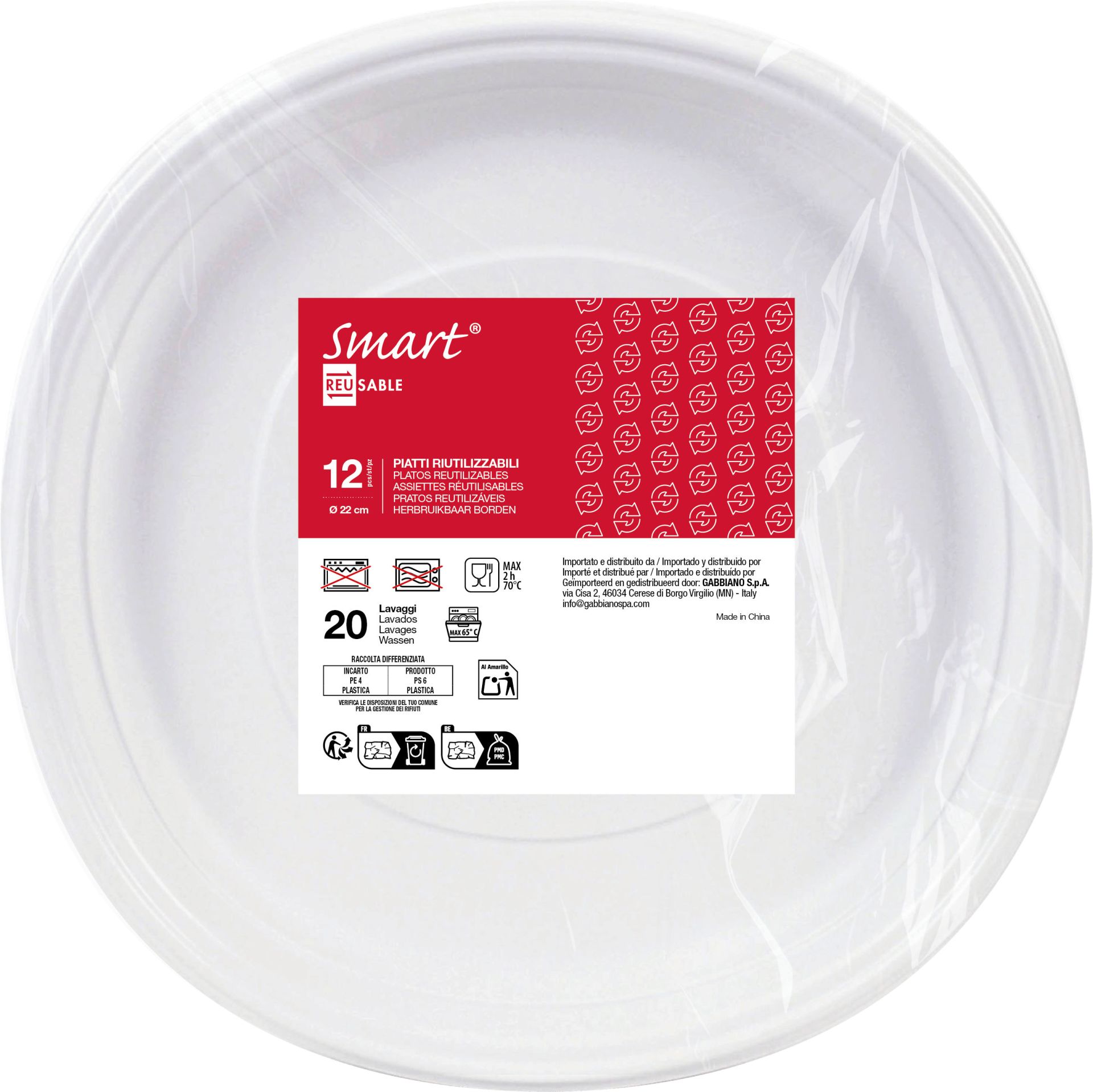 Smart Bord Rond Wit Herbruikbaar 22cm - 8 stuks