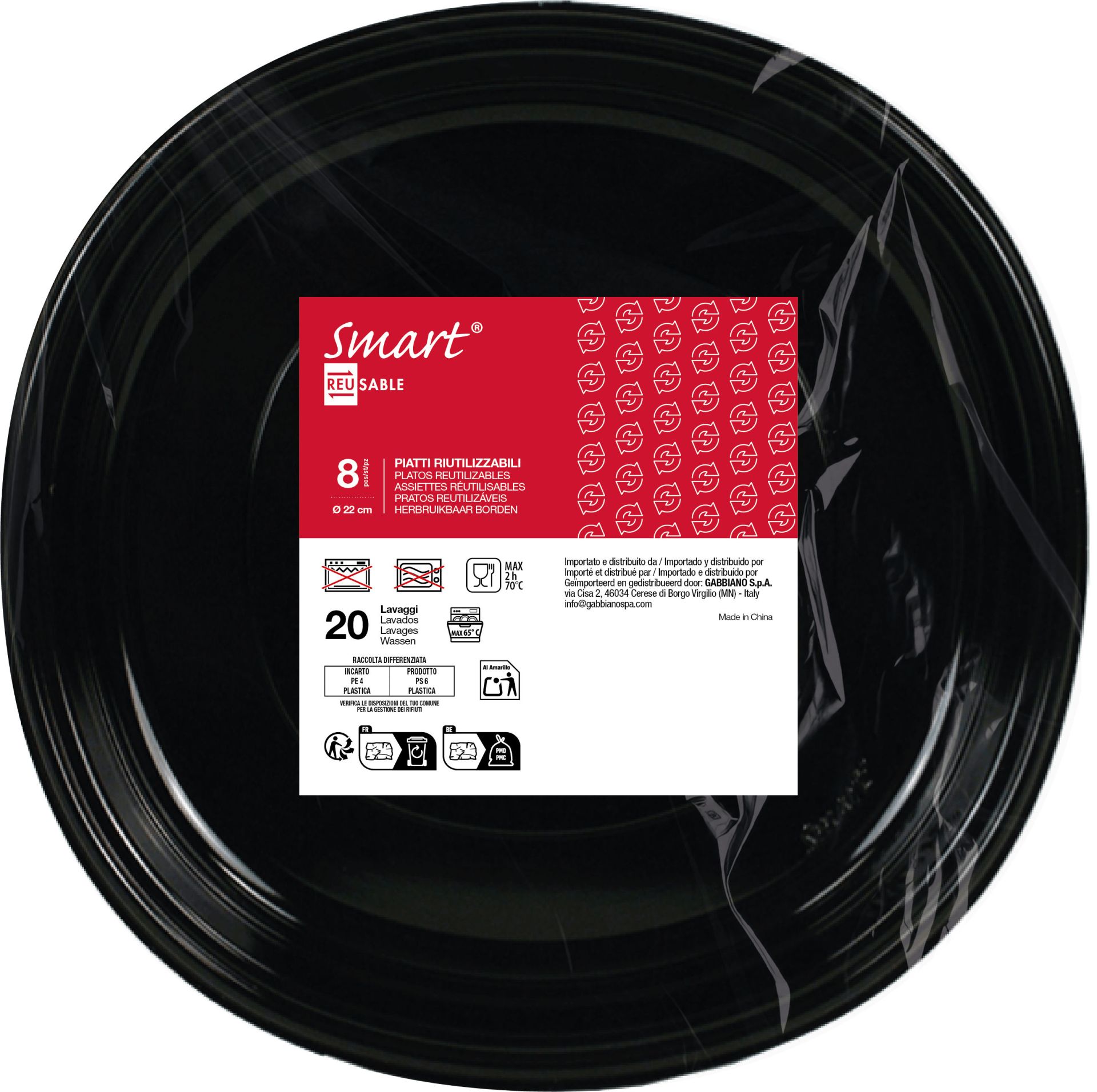 Smart Bord Rond Zwart Herbruikbaar 22cm - 8 stuks