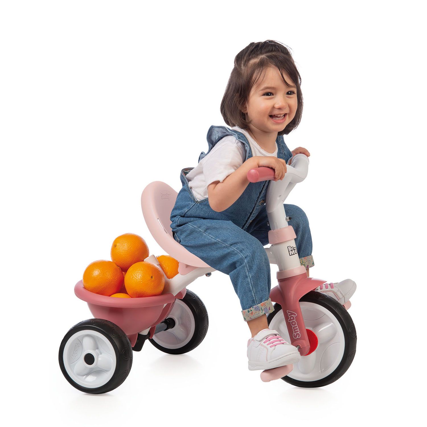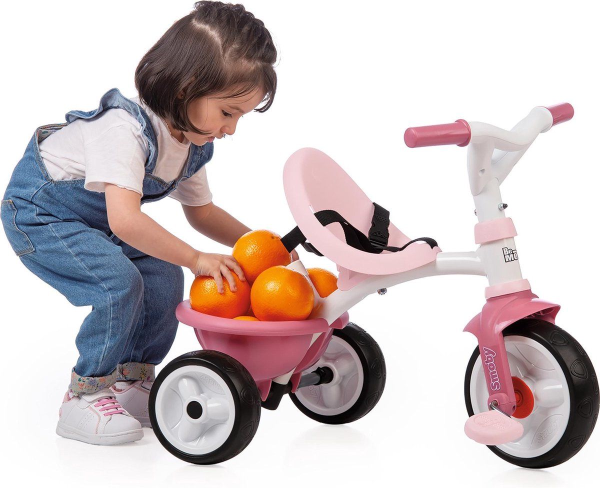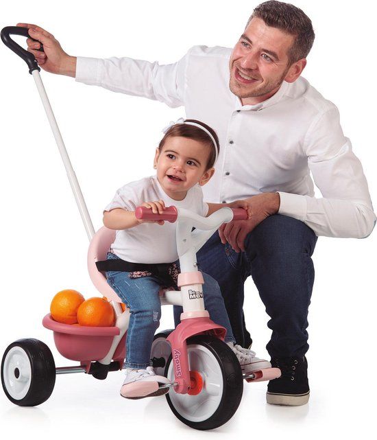 Smoby Be Move Driewieler Metaal Roze Fluisterbanden, duwstang en kipbakje