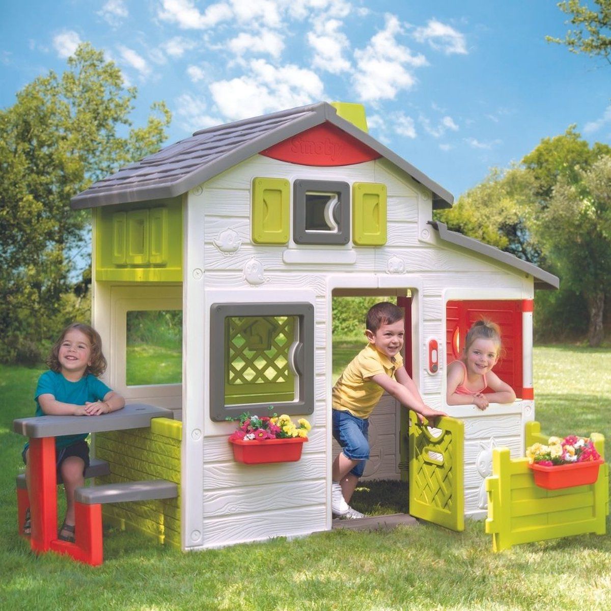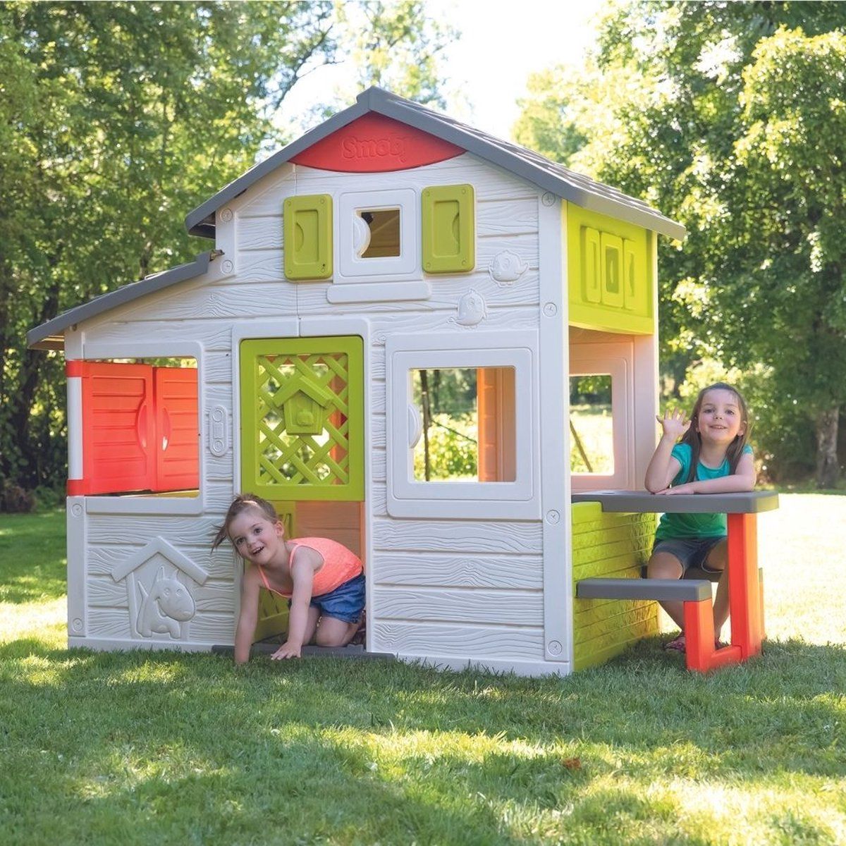 Compleet en ruim, het Neo Friends House biedt uw kinderen veel speelmogelijkheden! Ze kunnen hun vrienden uitnodigen om veel leuke tijden te beleven! Deze deze laatsten hoeven alleen de elektronische bel te gebruiken om hun aankomst aan te geven! Met zijn grote hoogte van 1,72 m en zijn anti-uv-behandelde kunststof die hout imiteert en steen, dit huis heeft alles van een modern huis.