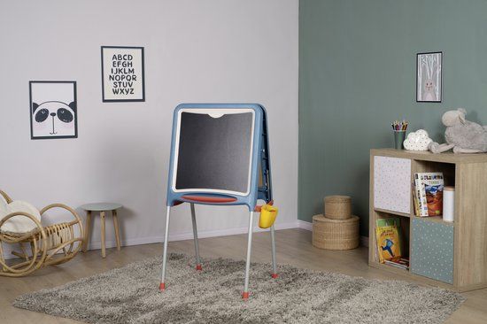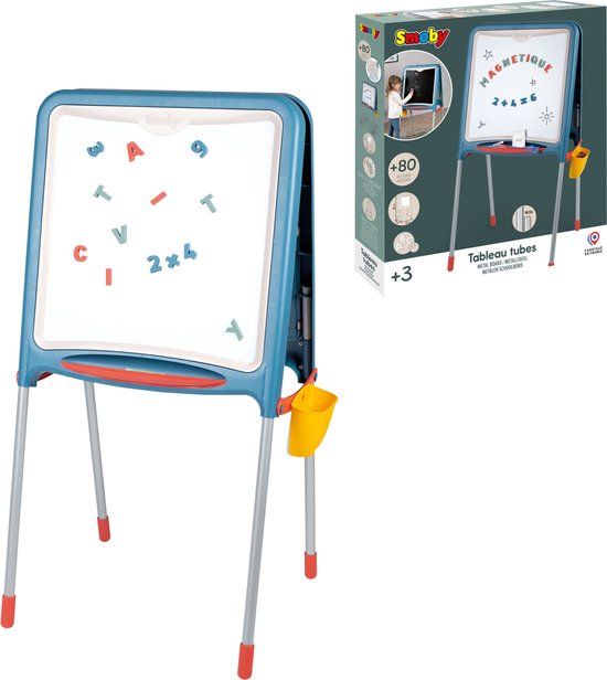 Smoby Schoolbord dubbelzijdig metalen frame, 80 acc. opvouwbaar, blauw