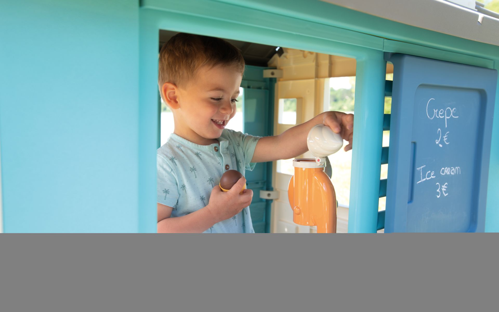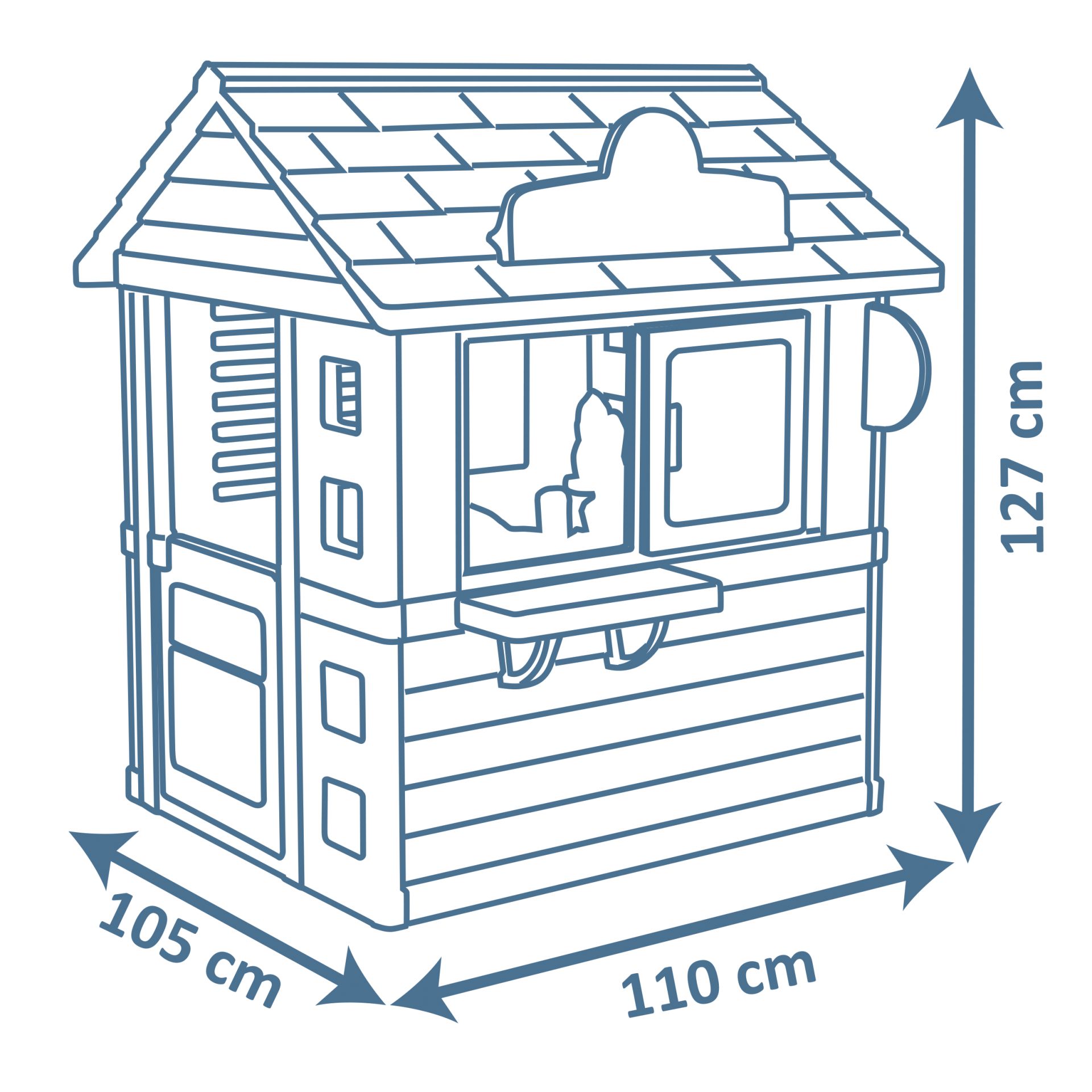 Met de Sweety Corner kunnen uw kinderen hun vriendjes ontvangen voor een snackpauze! Uitgerust met een poort, en 2 ramen met luiken, waarvan een met een schuifluik, kunt u in het huis wat lekkernijen bereiden! Uw kinderen kunnen pannenkoeken bakken met de pan en ijs maken met de ijsmachine en hun klanten gemakkelijk verzilveren! 18 accessoires zijn inbegrepen om de spelfuncties te verbeteren: 1 bord, 1 vork, 1 mes, 1 lepel, 1 mok met deksel, 1 pan voor het bakken van pannenkoeken, 2 pannenkoeken, 1 pot suiker, 1 pot vermicelli, 2 ijsjes, 4 bonnen, 1 creditcardlezer en 1 creditcard.