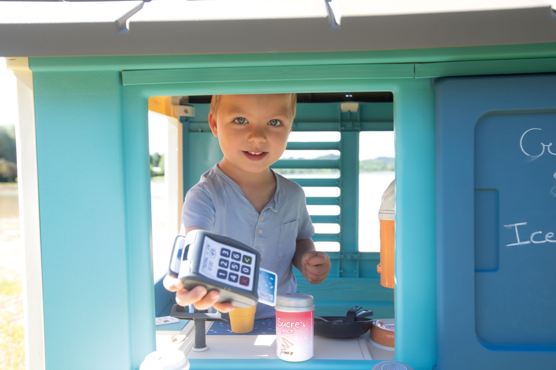 Smoby Sweety Corner, Speelhuis afhaal thema, kassa, ijsjesmachine, 18 acc.