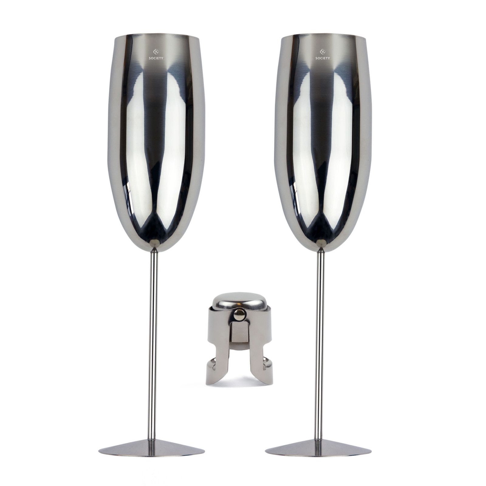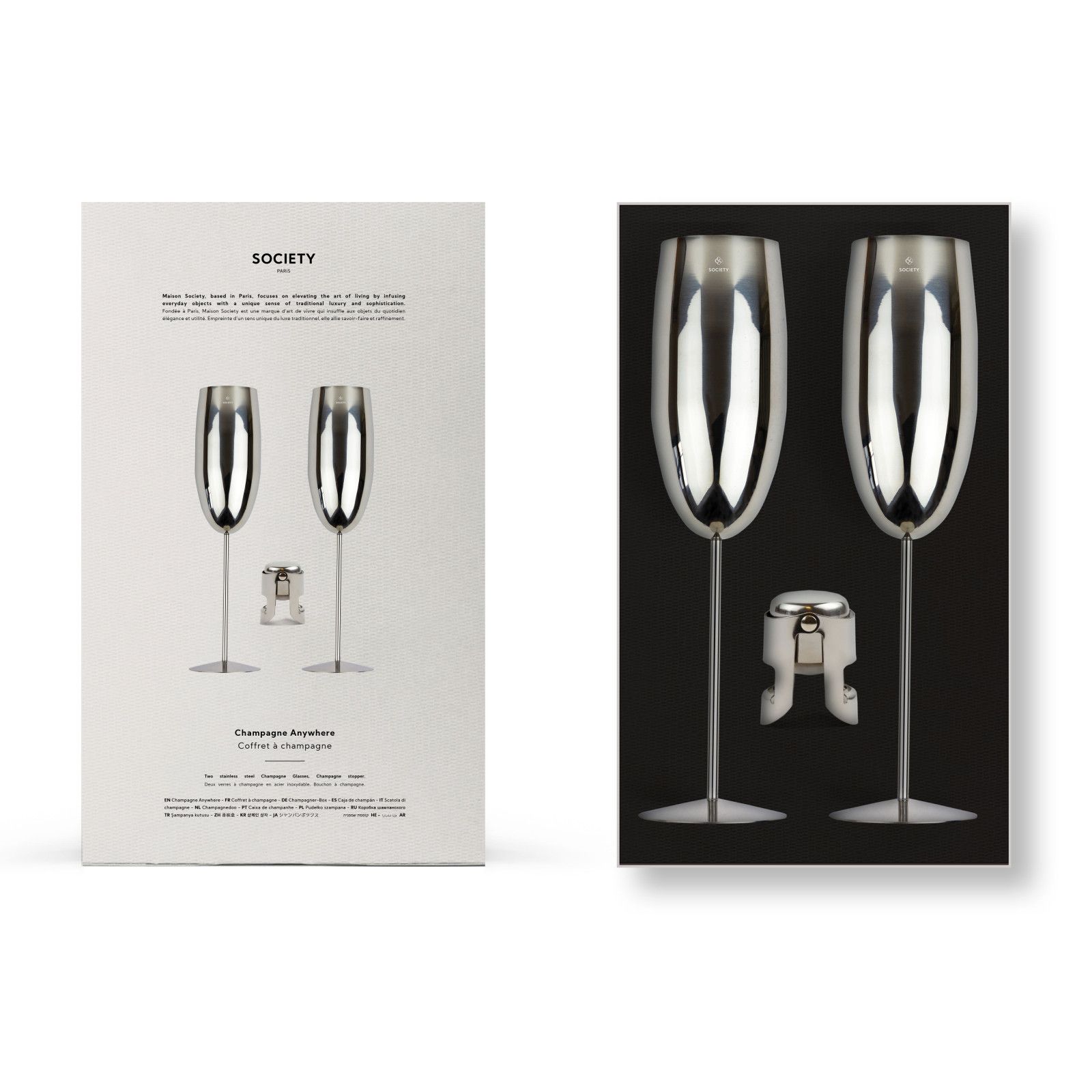 Society Champagne Anywhere 2 Champagneglazen & Flesstop - RVS