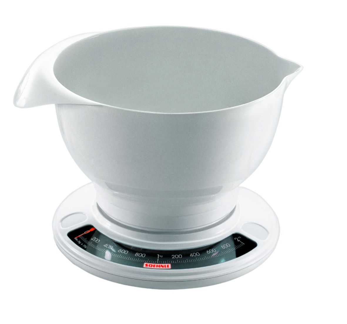 Soehnle Keukenweegschaal Culina Pro Wit - Analoog - tot 5kg - op 50g - 11.6x21.5x28 cm - Mengkom 2.5l met Schenktuit en Handgreep