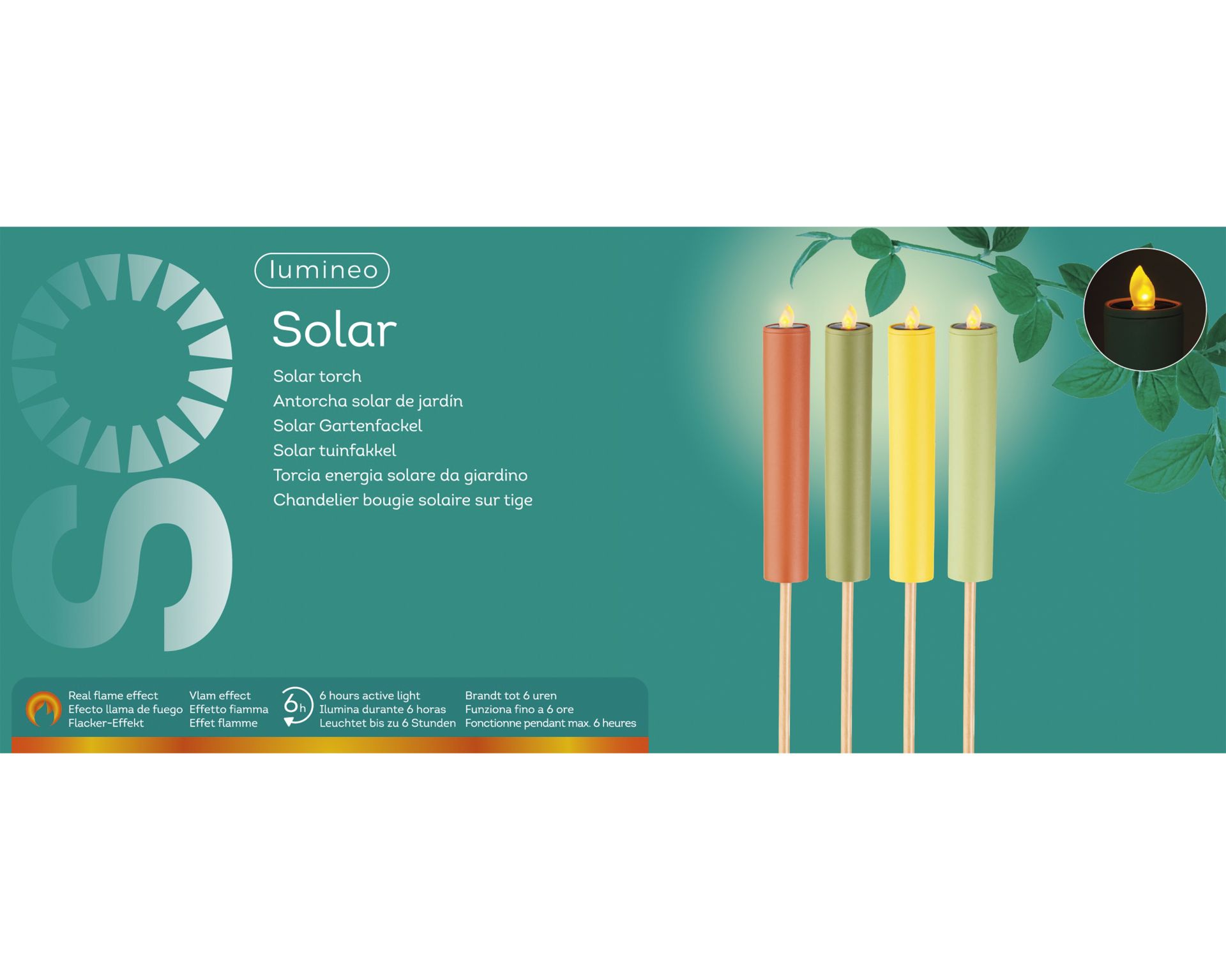 Solar LED Fakkel Kaars 4x90 cm - assorti - prijs per stuk