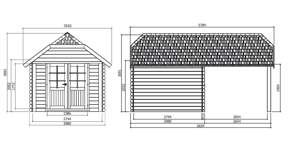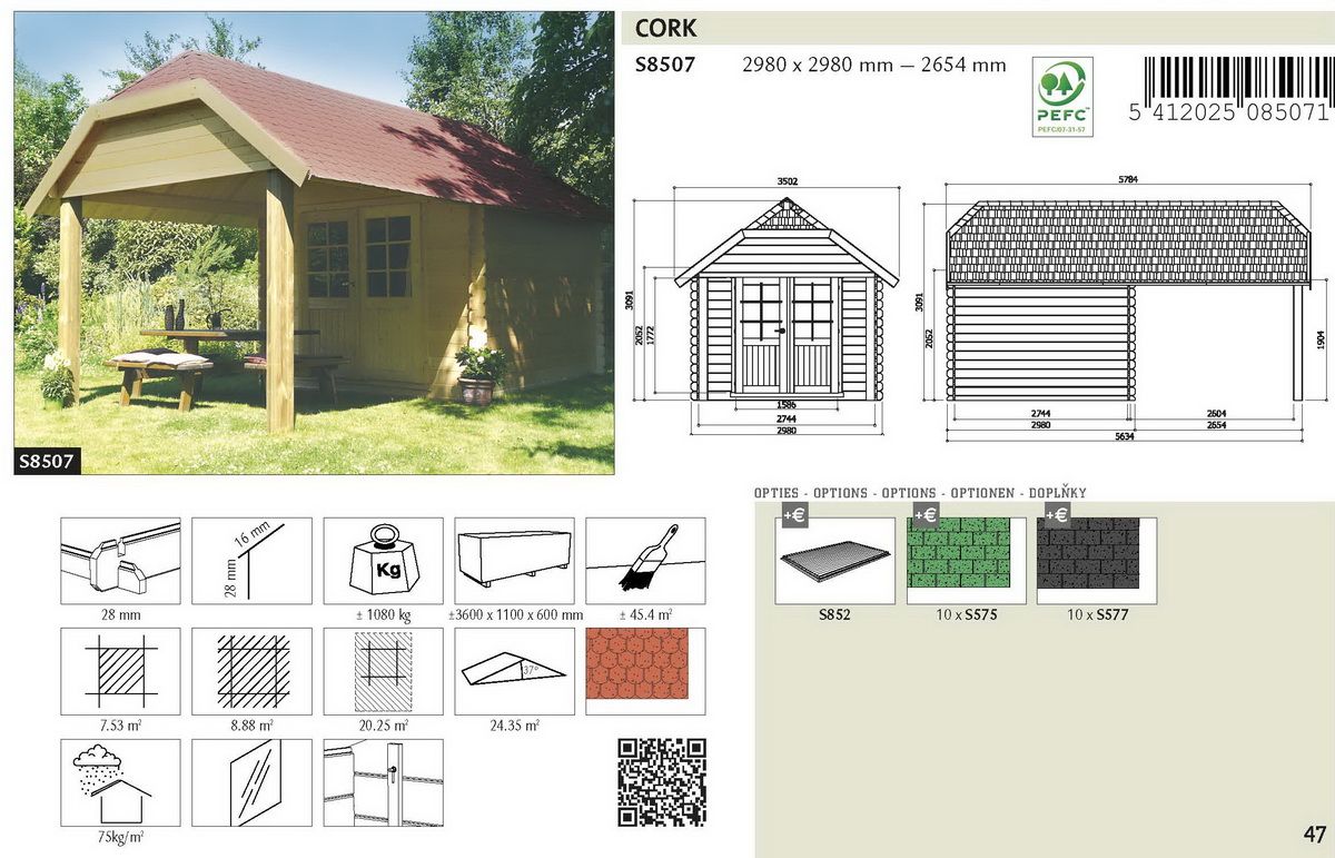 Solid Tuinhuis Cork (2980mm+2654mm) x 2980mm x 3091mm