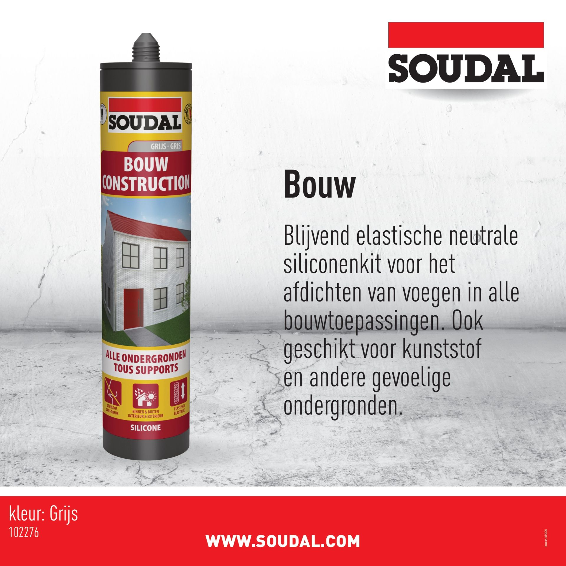 Soudal Bouw Silicone Grijs 290 ml